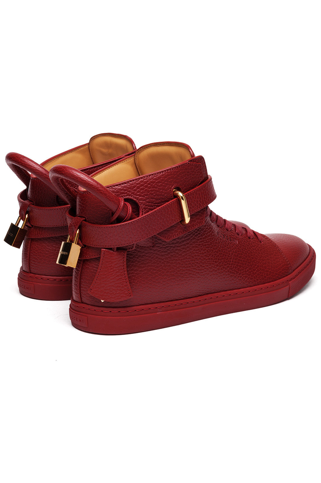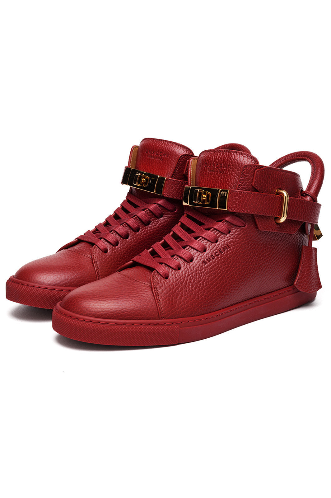 Red 1007SP14-REDHand crafted in Italy, the 100MM high-top sneaker is artfully constructed of full-grain Italian calf leather with hand painted edges and signature heel handle. The shoe is paired with gold plated hardware featuring a 3-piece closure and lock. 100 millimeters in height.