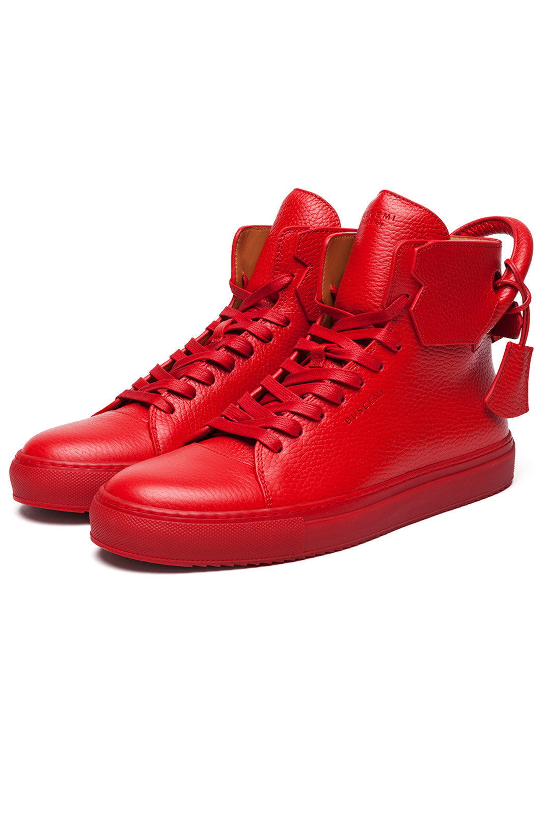 Red 1125SP16-REDHand crafted in Italy, the iconic 100MM high-top sneaker is presented in full-grain Italian patent leather. Artfully constructed with hand painted edges, heel handle and key clochette. The shoe comes with gold plated hardware featuring signature clip closure and signature lock. Rubber sole guarantees durable traction. 100 millimeters in height. Quality is everlasting