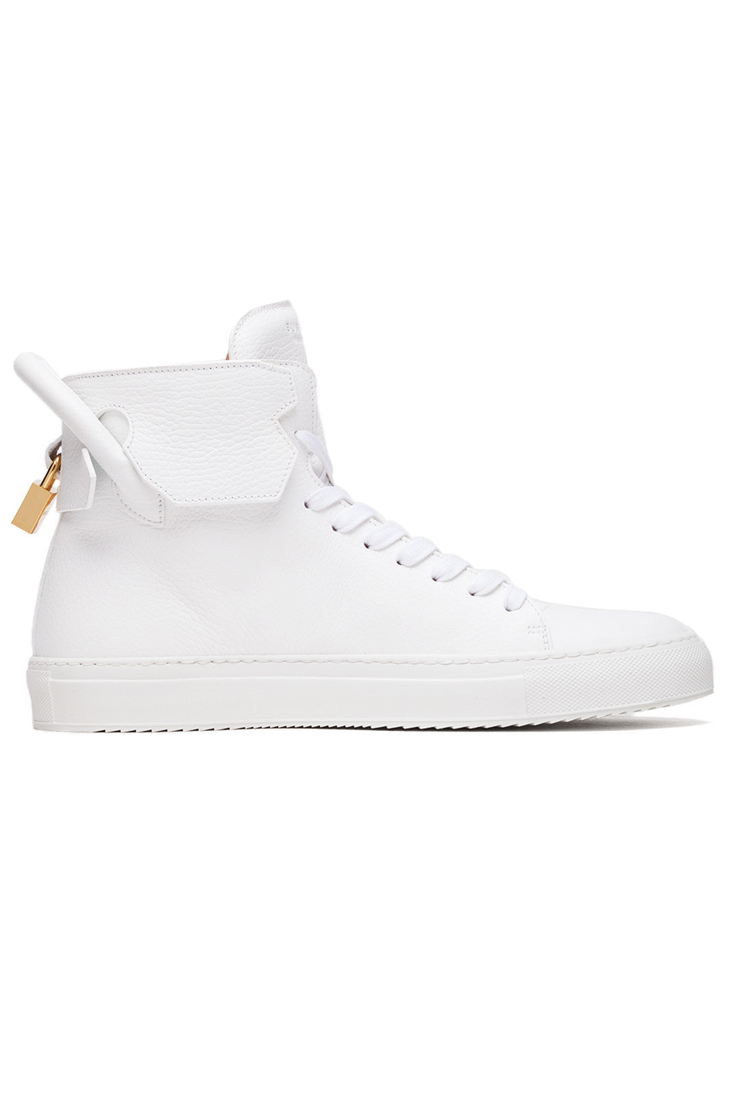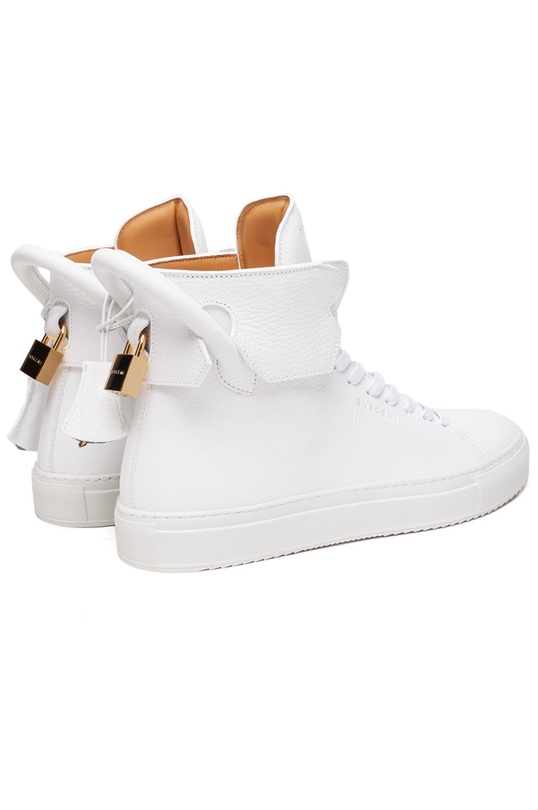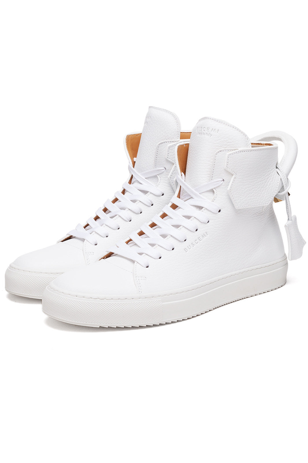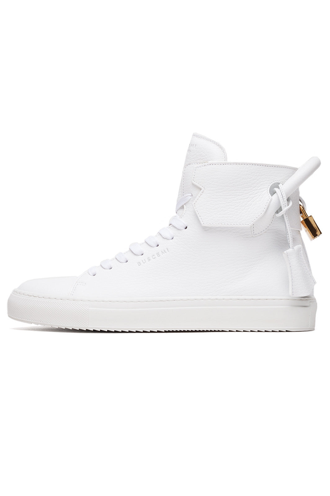 White 1010SU14-WHTHand crafted in Italy, the 125MM high-top sneaker is artfully constructed of full-grain Italian calf leather with hand painted edges and signature heel handle. The shoe is paired with a gold plated lock and key set and 100% waxed cotton laces. 125mm in height.