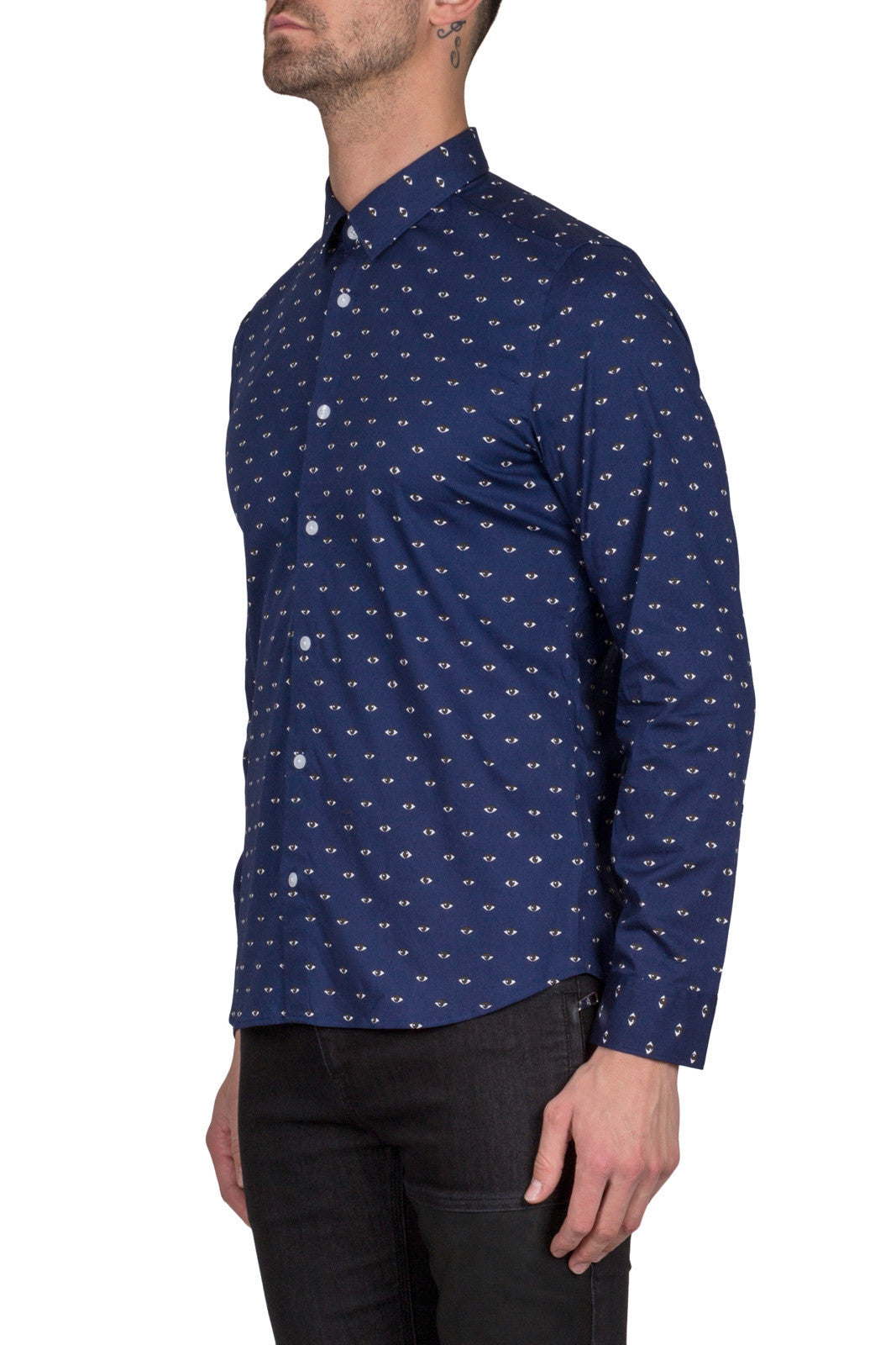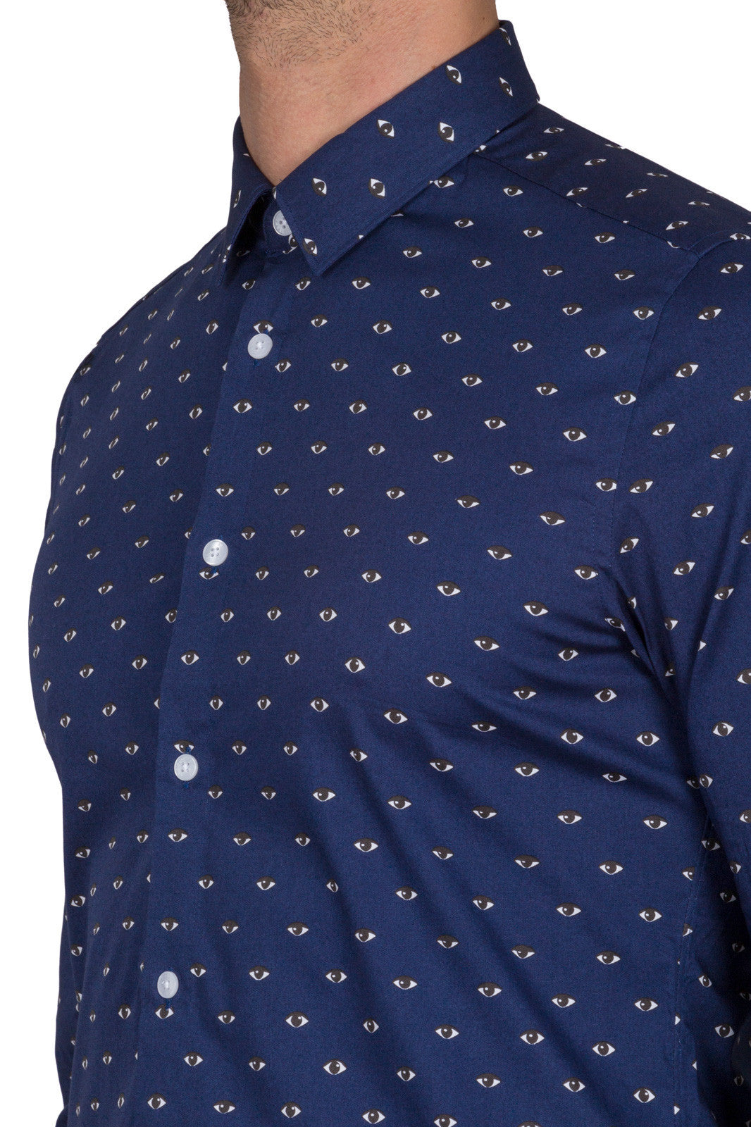 Blue F755CH2001FM 76All over EYE Shirt in stretch cotton.