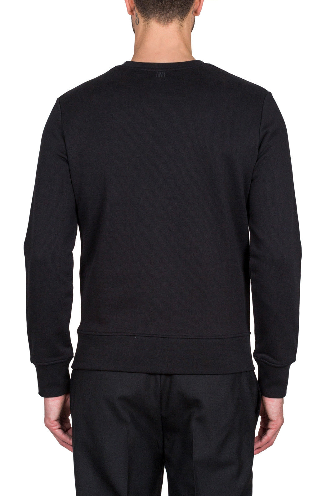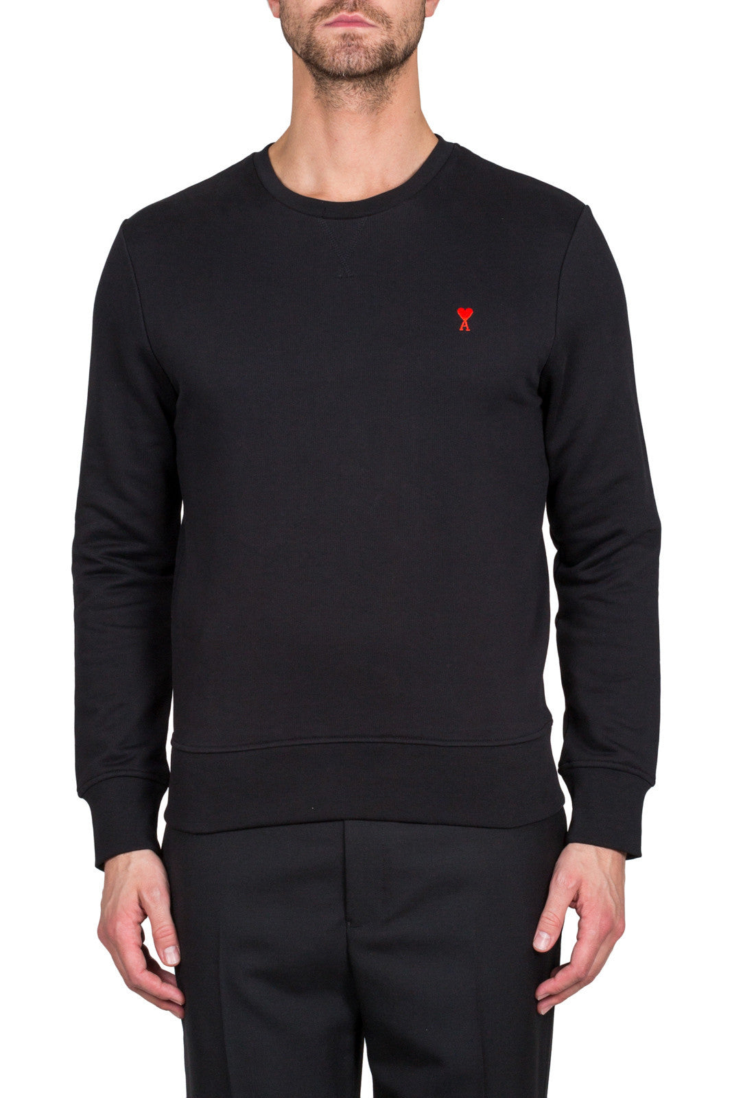 Black E17J007.730 001Classic crew neck sweatshirt in black cotton featuring long sleeves, a fitted hem and cuffs and a red embroidered Ami de Coeur logo to the chest.