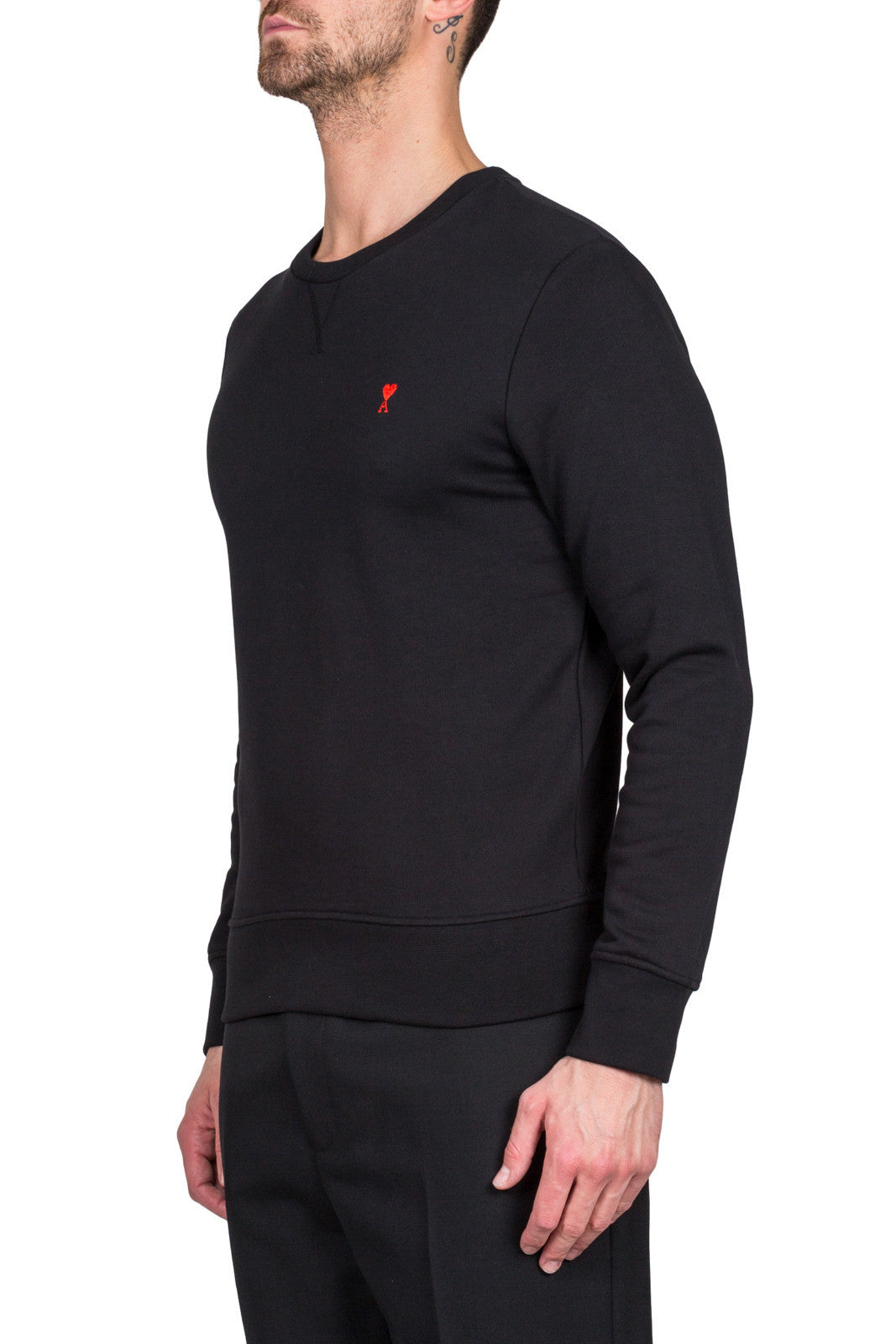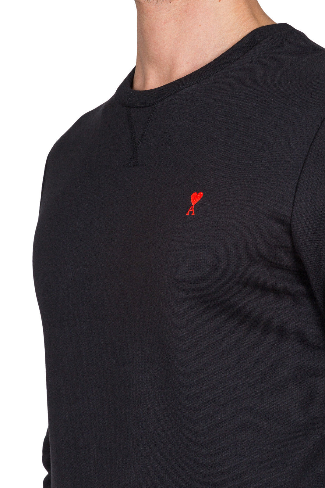 Classic crew neck sweatshirt in black cotton featuring long sleeves, a fitted hem and cuffs and a red embroidered Ami de Coeur logo to the chest.