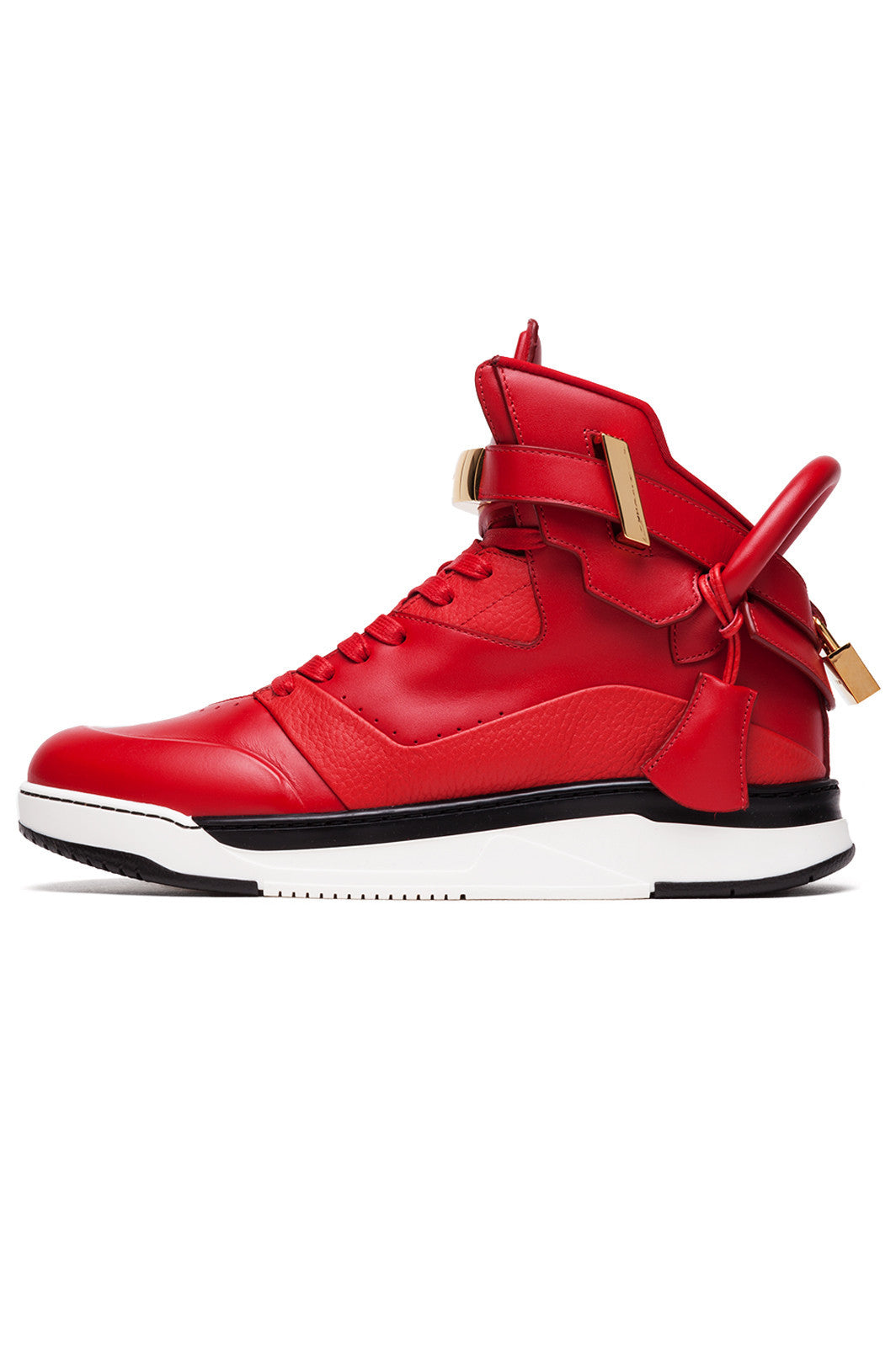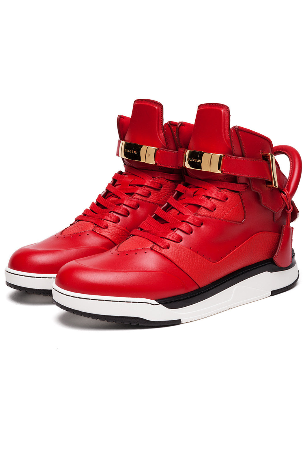 Red 1003F16-REDHand crafted in Italy, the B-Court is a premium basketball sneaker artfully constructed of Alce pebbled calf leather, finished with gold galvanized alloy hardware and signature heel handle. Court sole developed exclusively for BUSCEMI. Under injected silicone at tongue and toe for maximum comfort. 100MM in height.