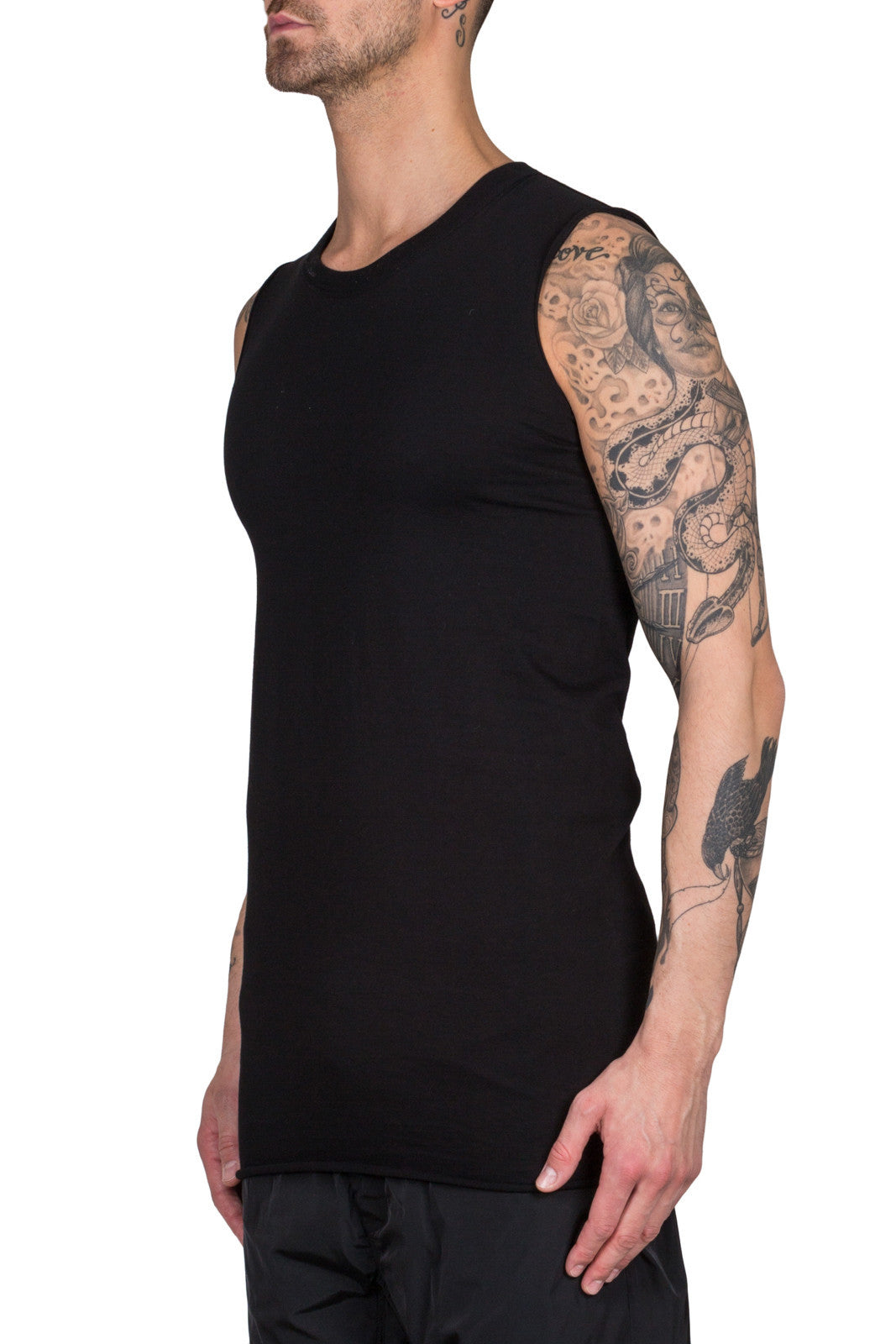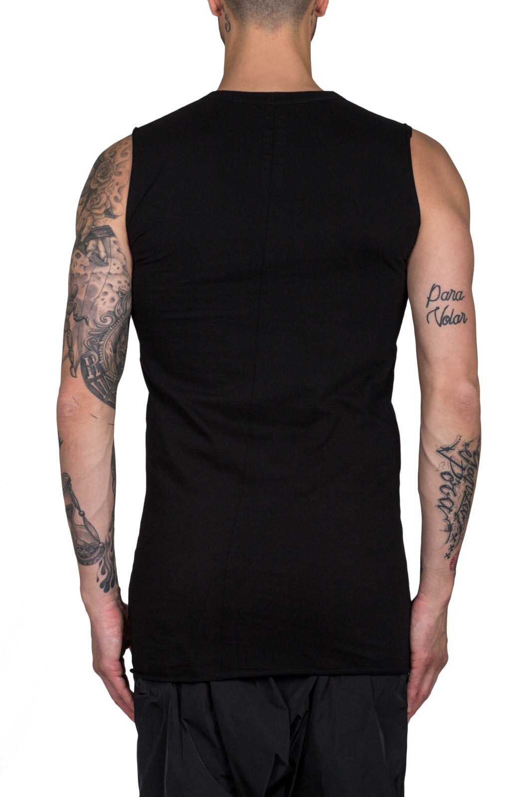 Black RU17S9151 JT 09Black cotton basic sleeveless tee from Rick Owens