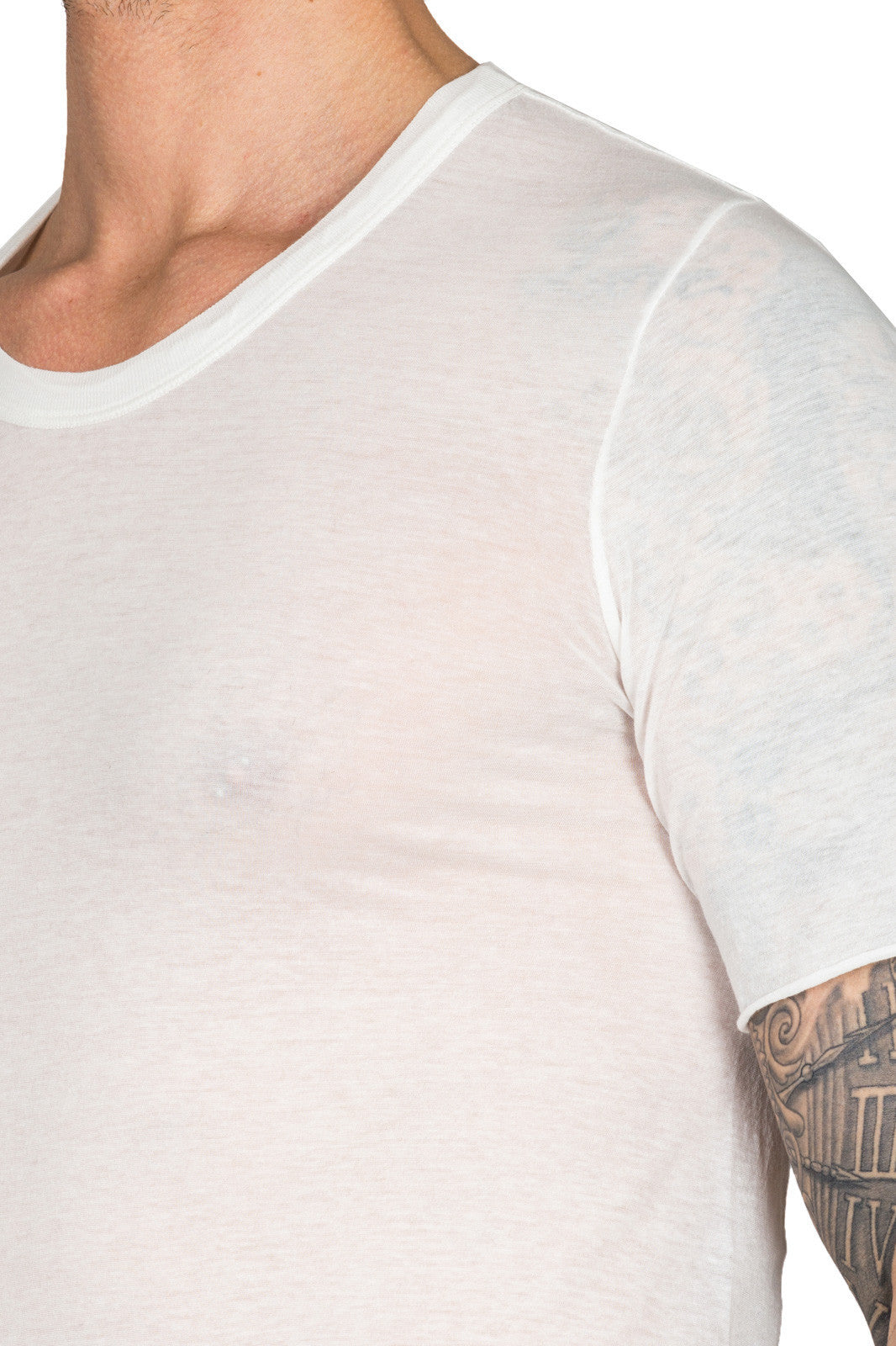 White RU17S9251 UC 11White cotton basic t-shirt featuring a round neck, short sleeves and a straight hem from Rick Owens.