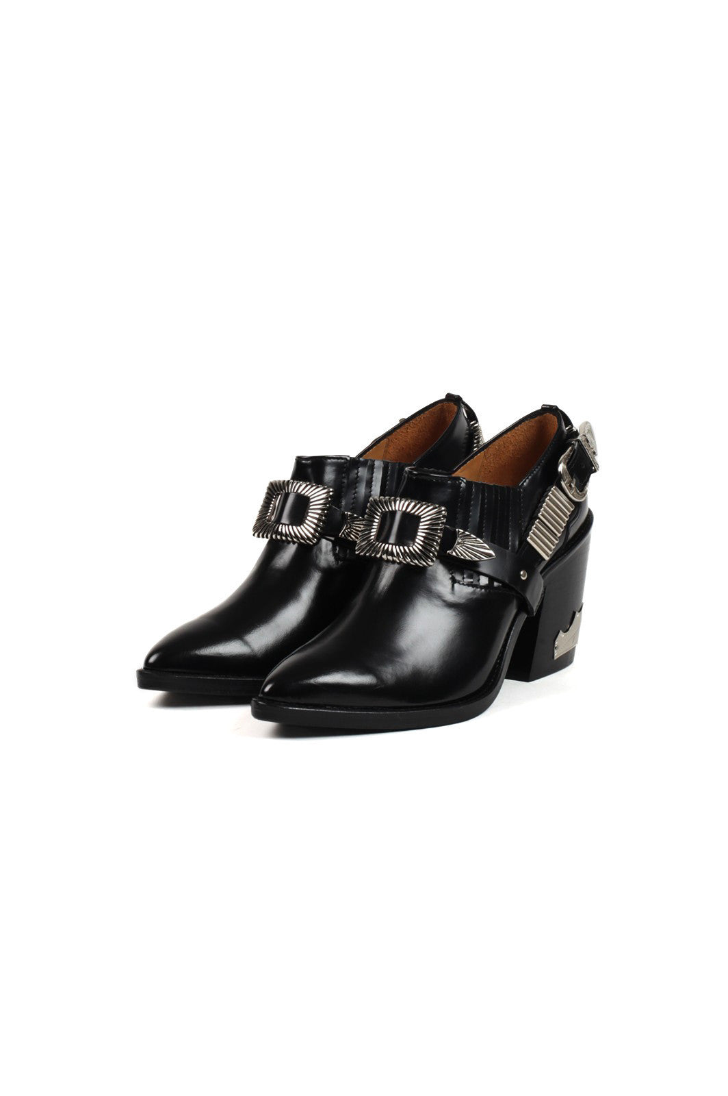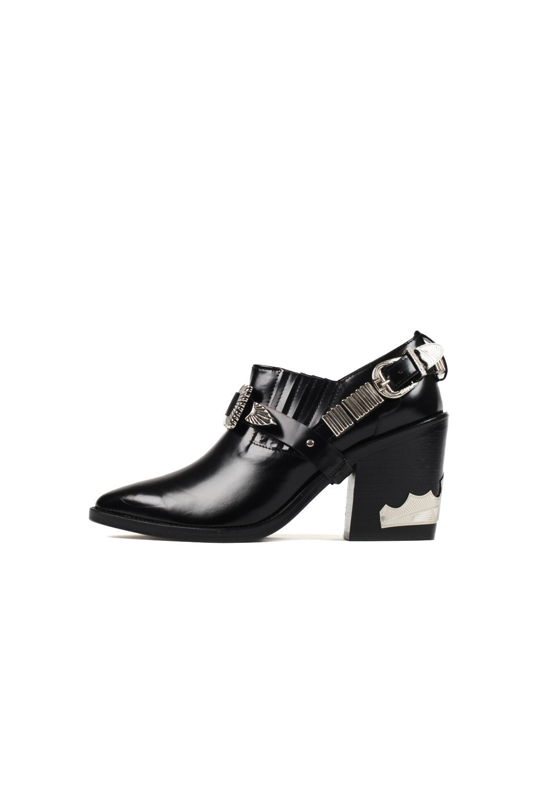 Black AJ728-BLACK LEATHERToga Pulla Buckled Chunky Heel Booties