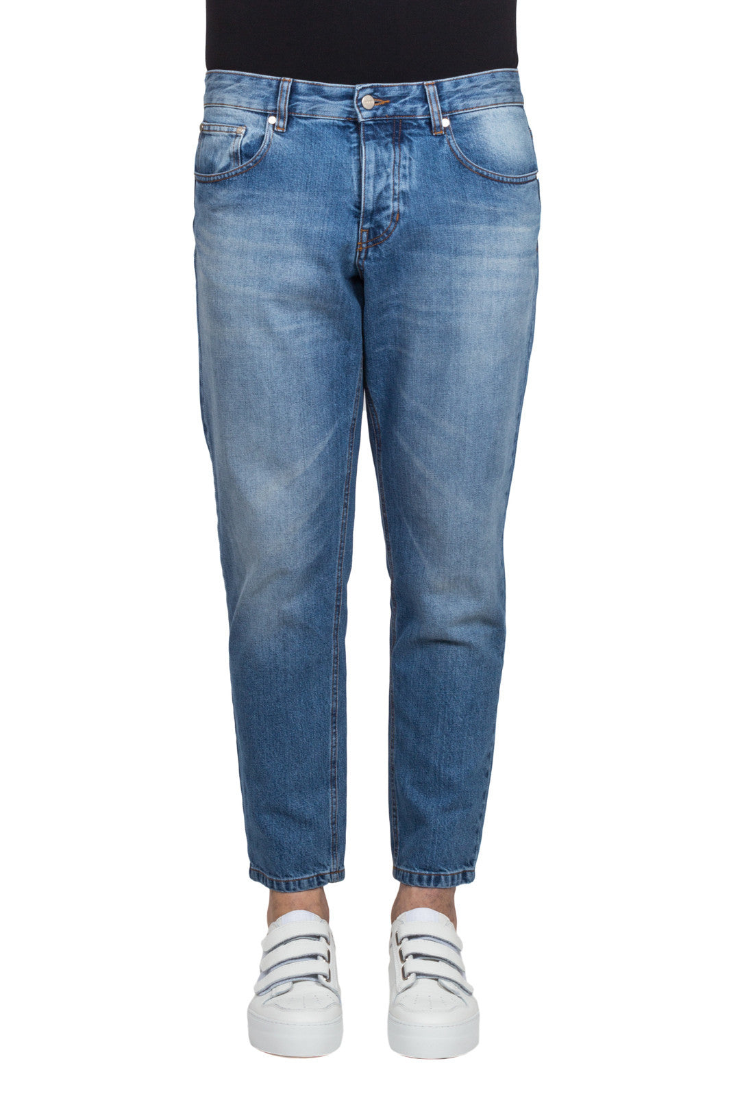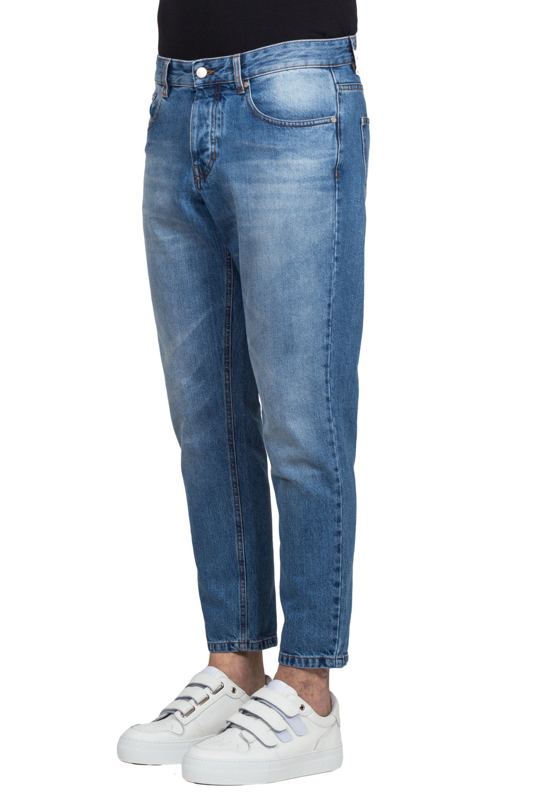 Denim E17D04.602 459These carrot fit jeans in light indigo denim feature a practical five pocket design, button fly and subtle leather logo at the rear.