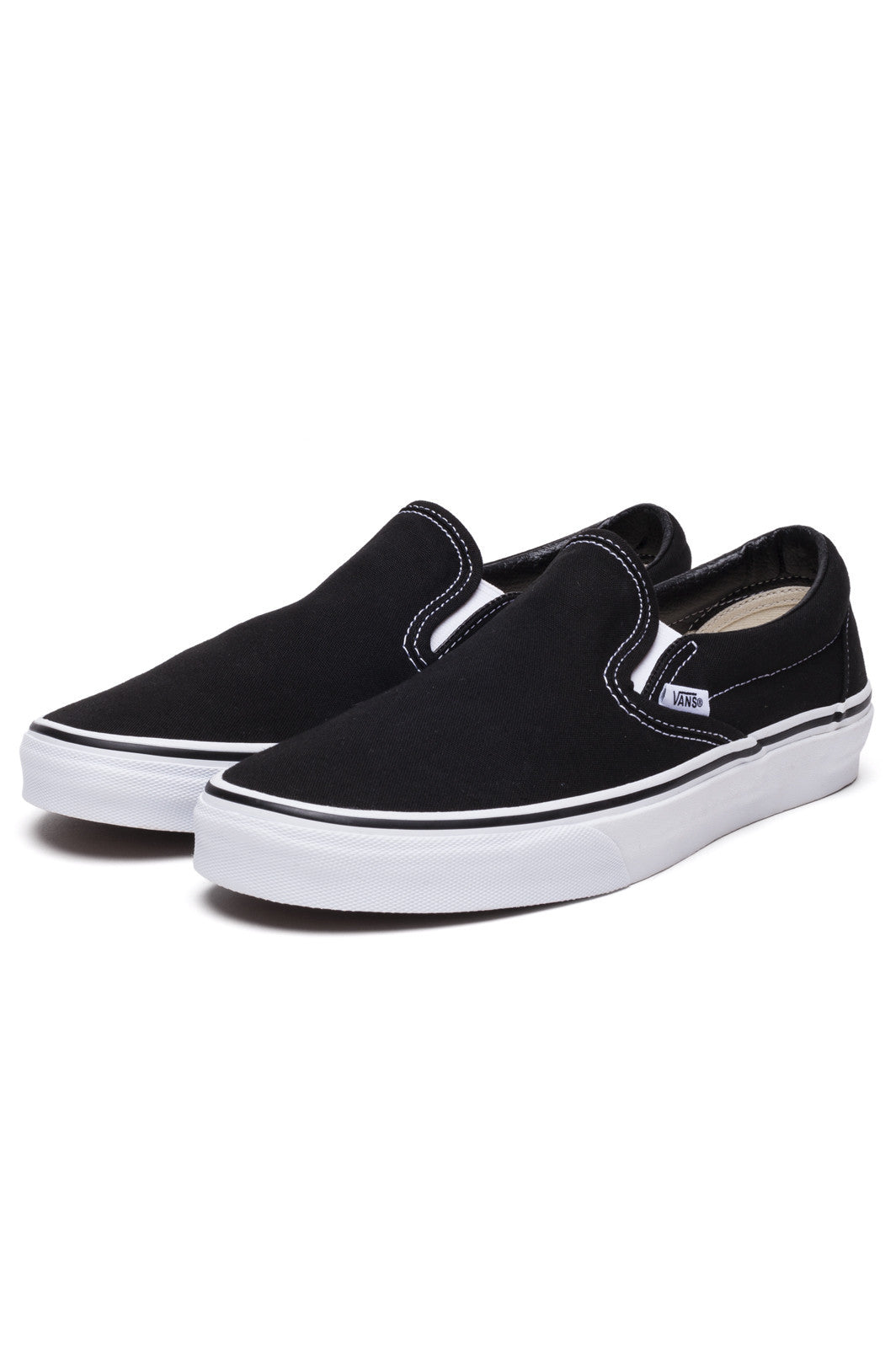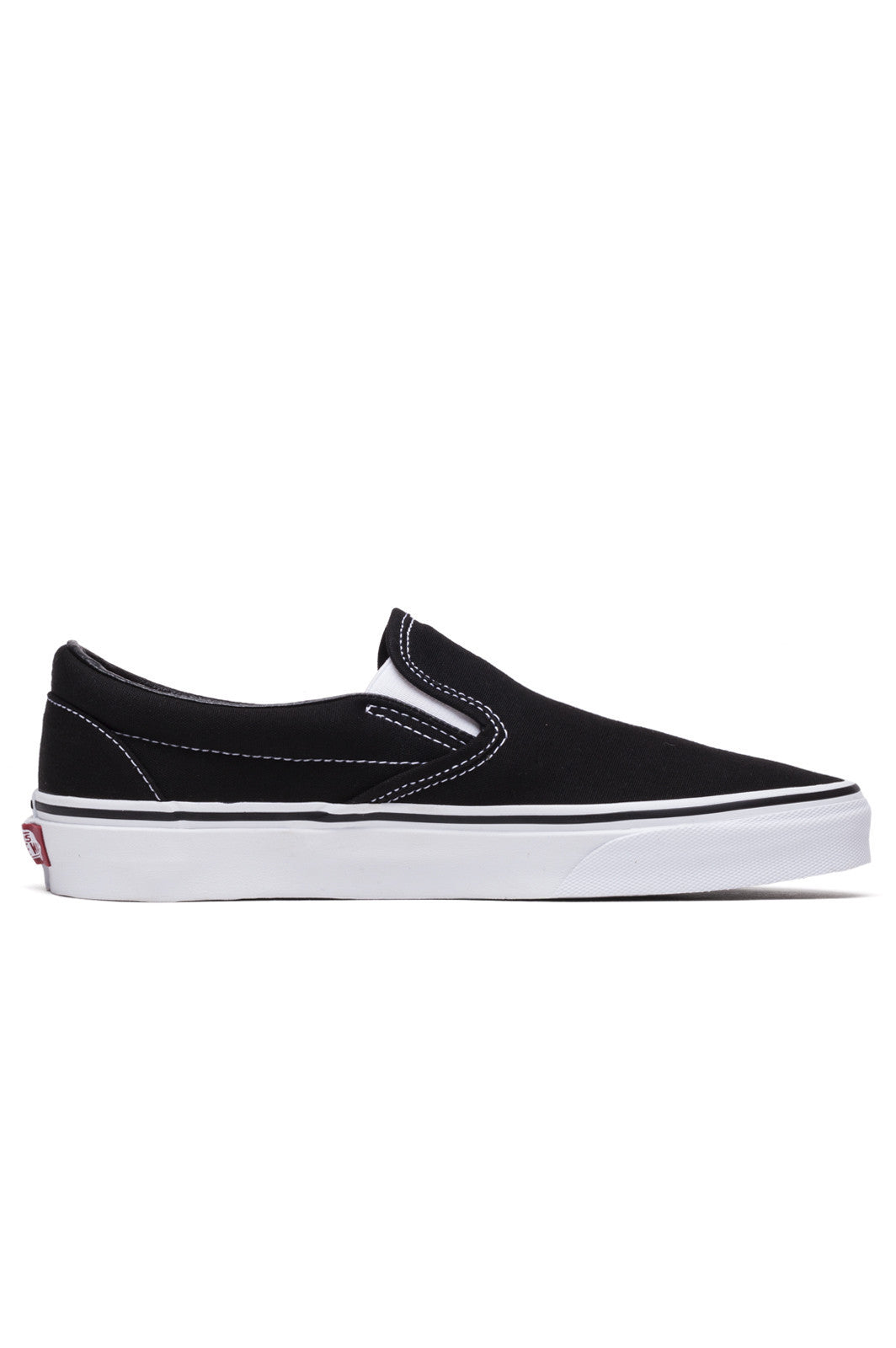 Black VEYEBLKVans The Canvas Classic Slip-on has a low profile, slip-on canvas upper with elastic side accents, Vans flag label and Vans original Waffle Outsole