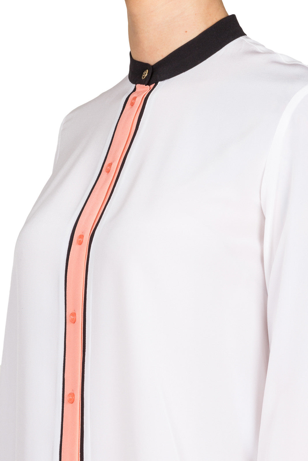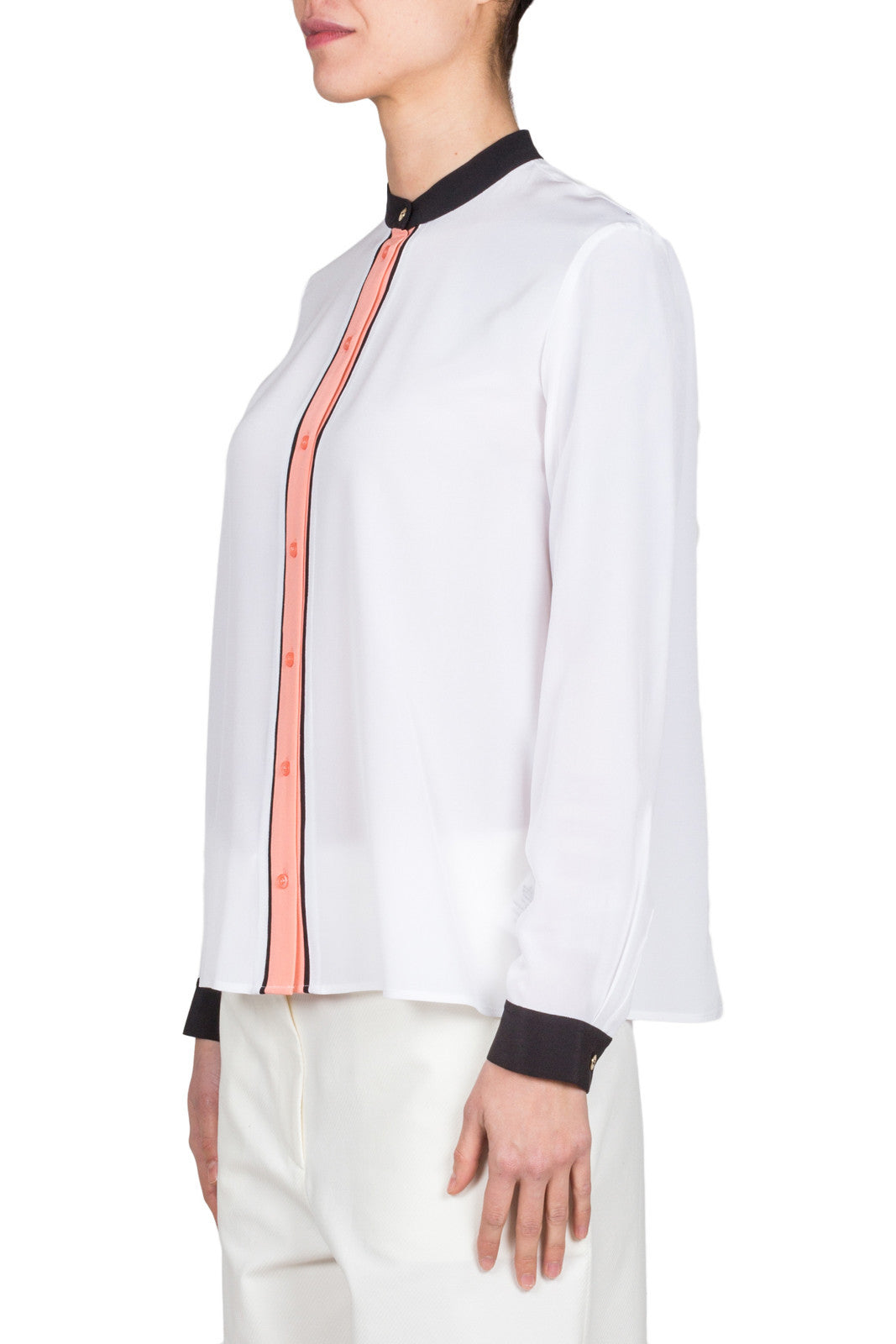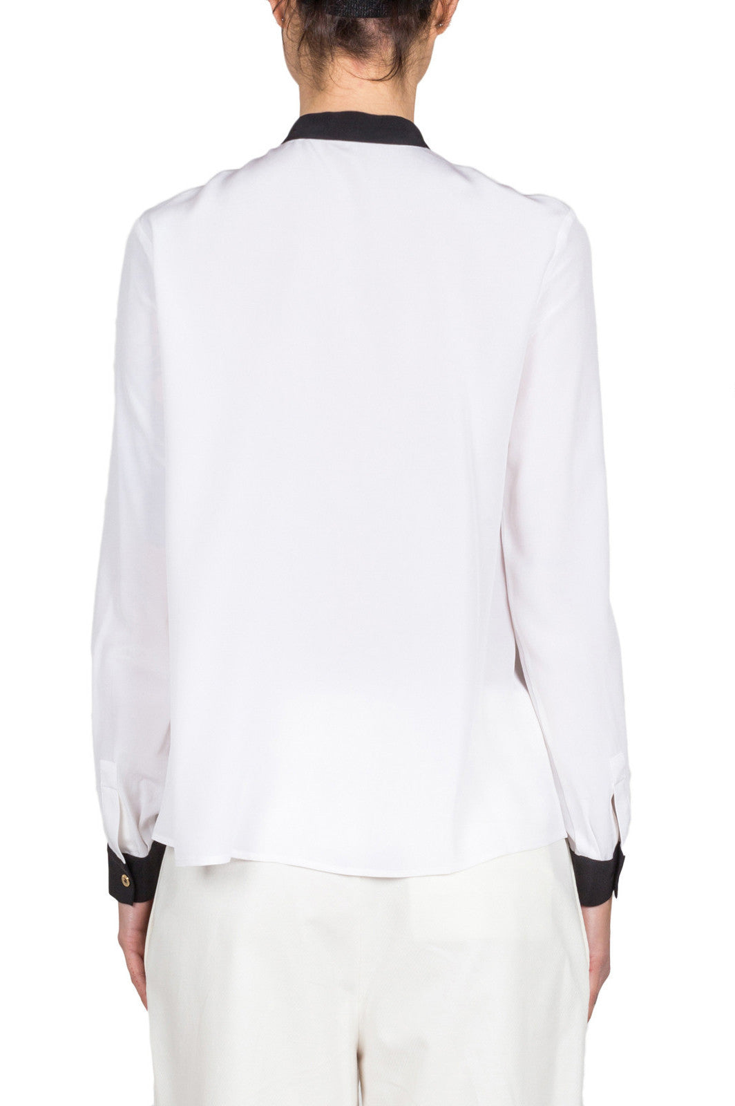 White F752CH127520 01Collar block Mao collar blouse in silk crepe de chine.