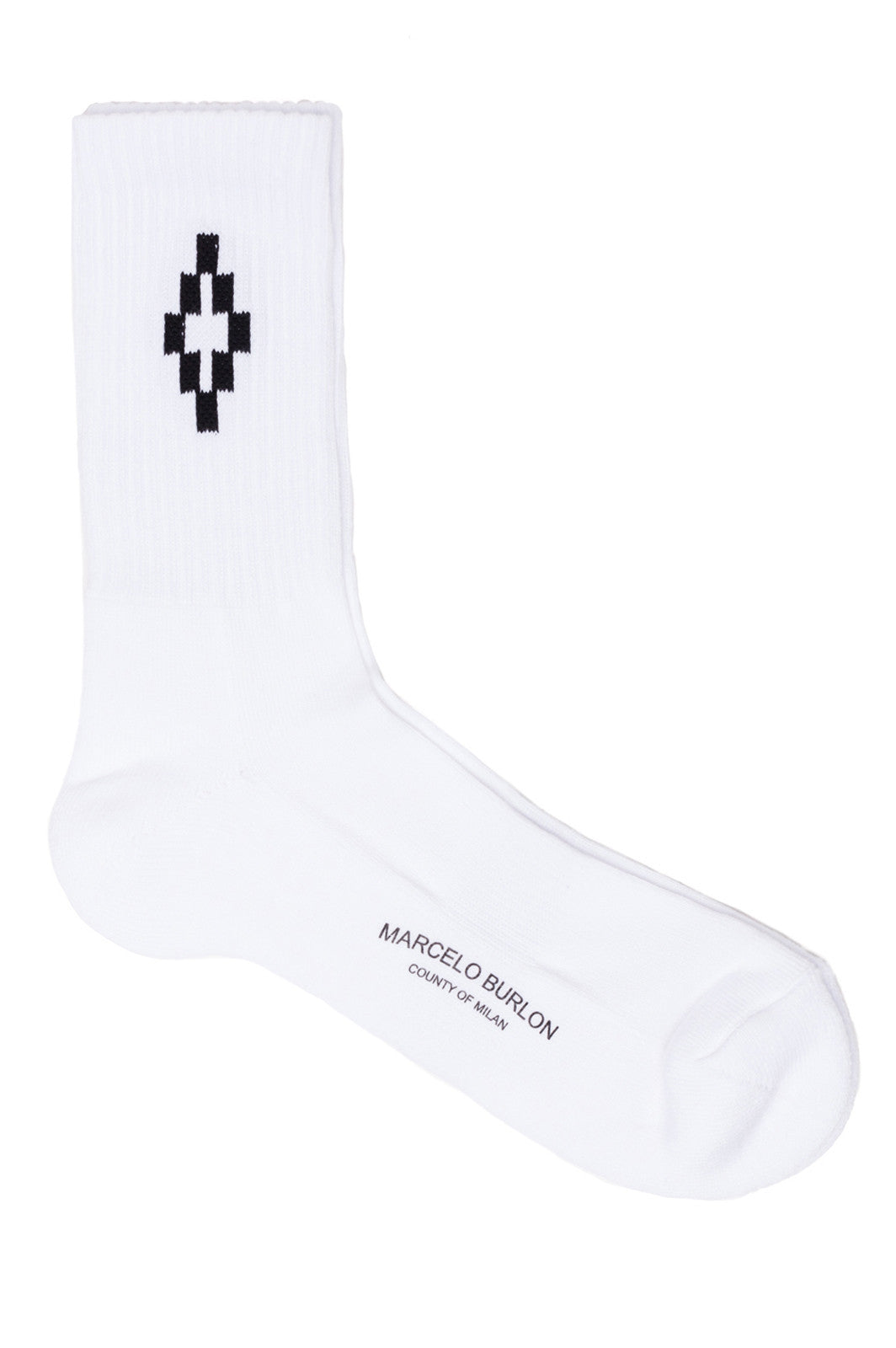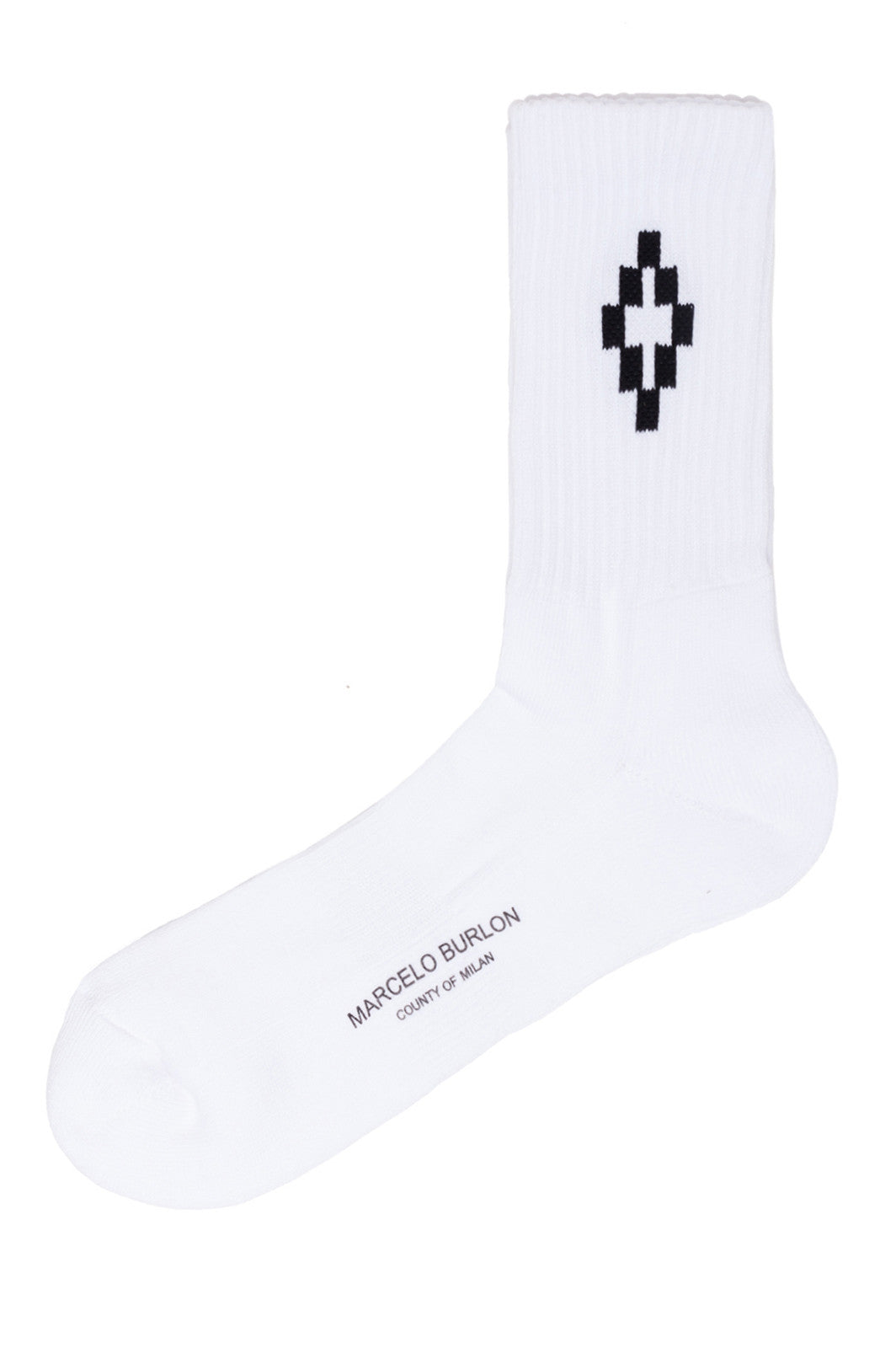 White stretch cotton Cruz socks featuring a ribbed design and an intarsia logo detail from Marcelo Burlon.