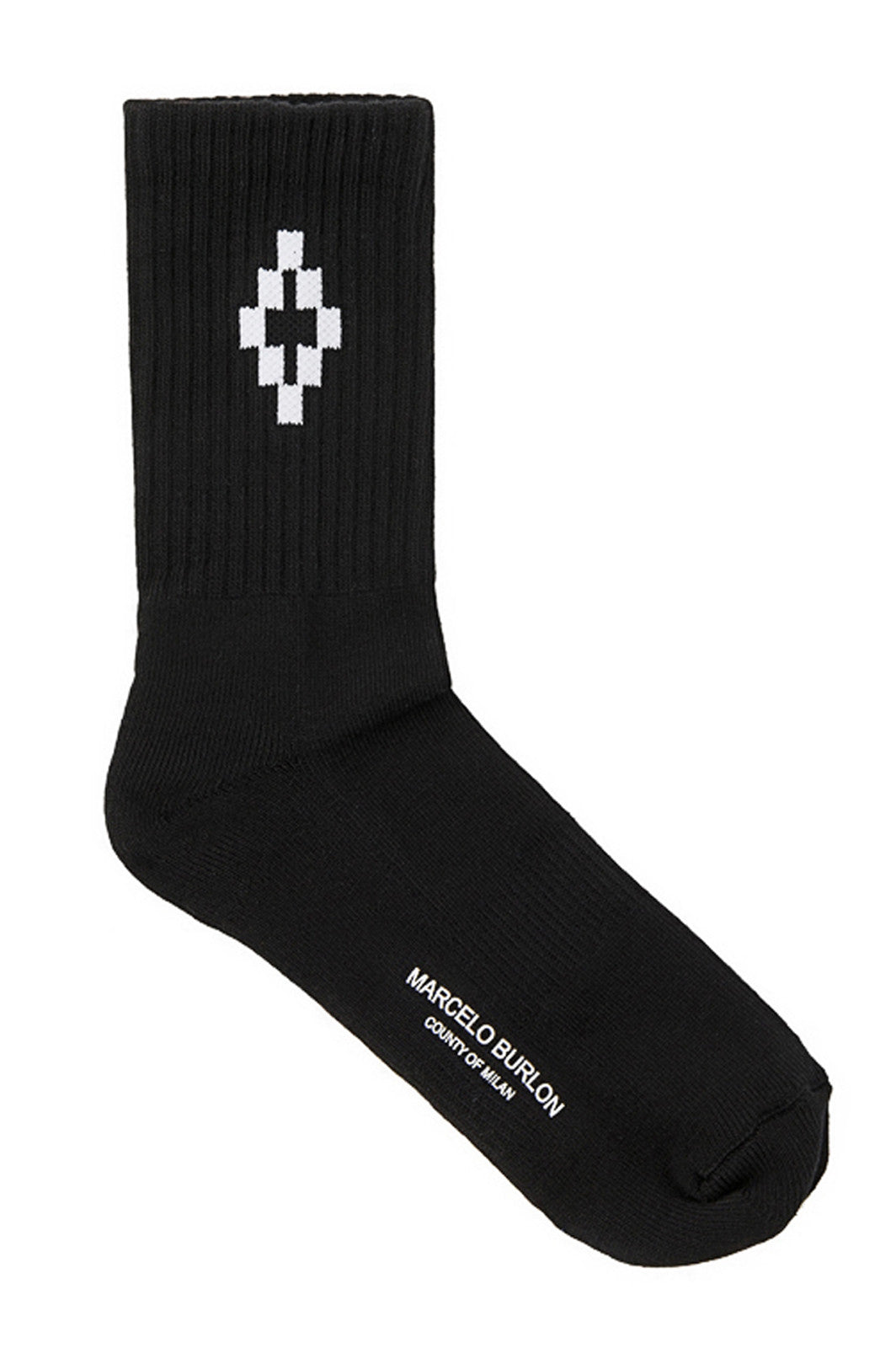 Black CMRA003S17096129 1001Black stretch cotton Cruz socks featuring a ribbed design and an intarsia logo detail from Marcelo Burlon.