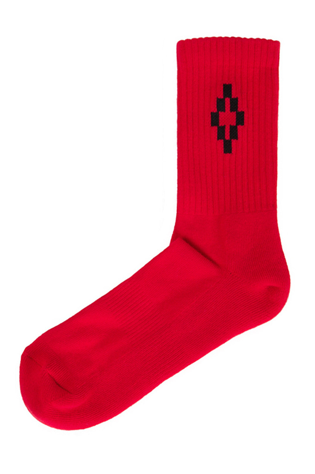 Black CMRA003S17096129 2010Red stretch cotton Cruz socks featuring a ribbed design and an intarsia logo detail from Marcelo Burlon.