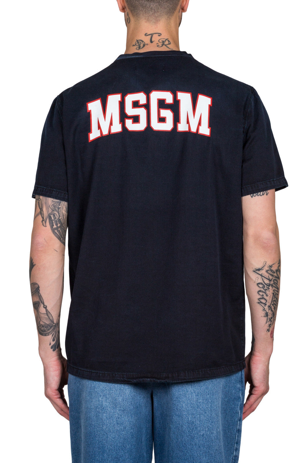 Black 2240MM26L 174285 99Black cotton denim effect T-shirt from MSGM.