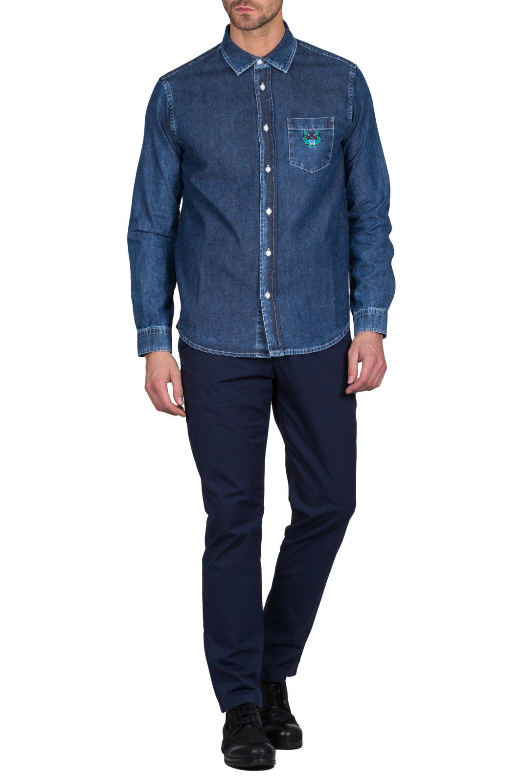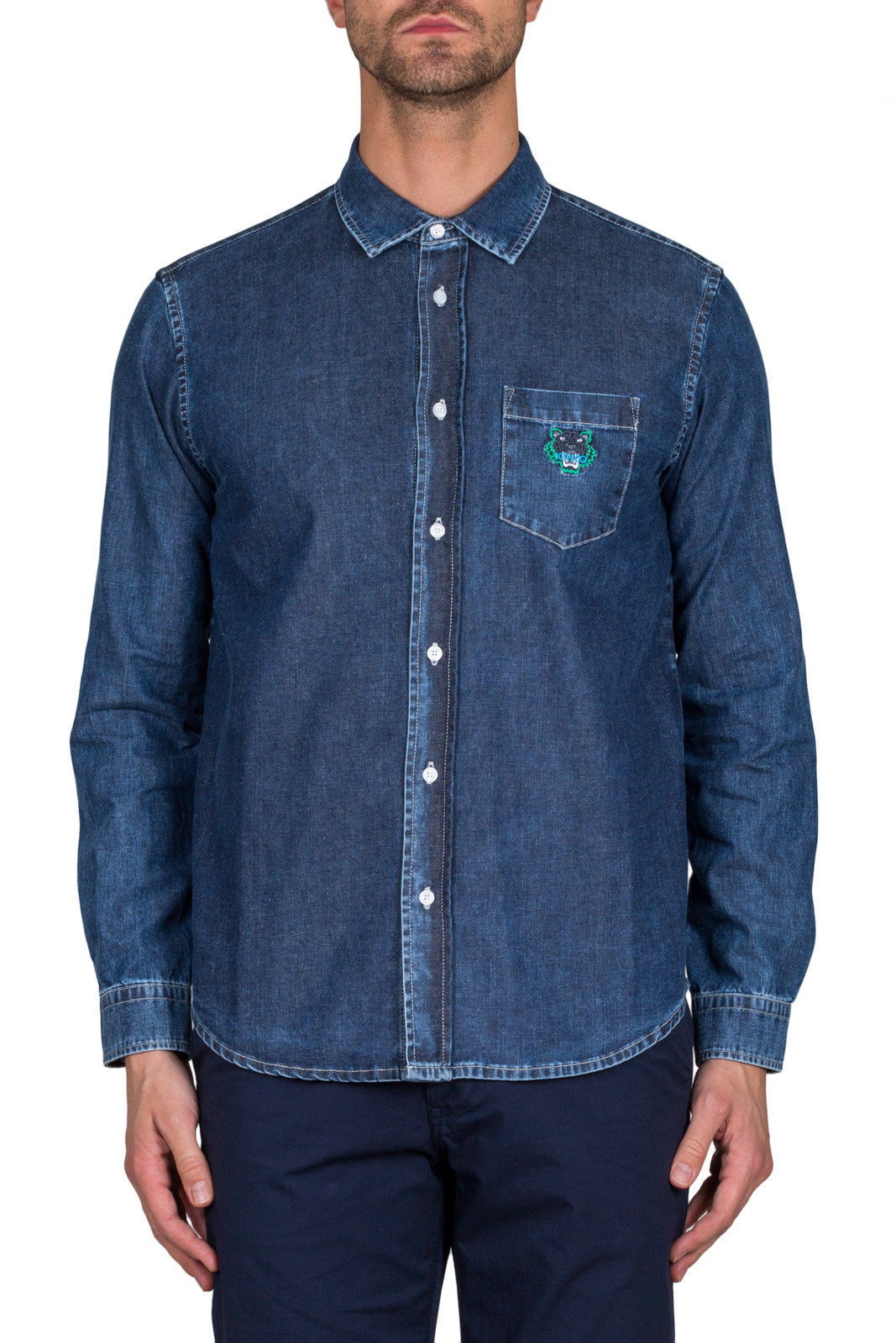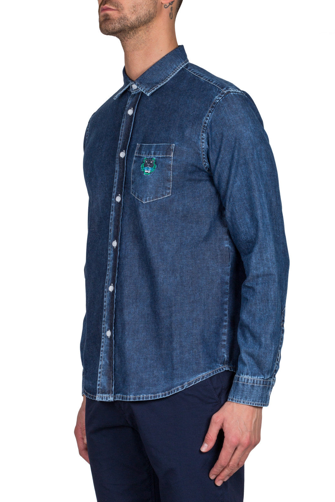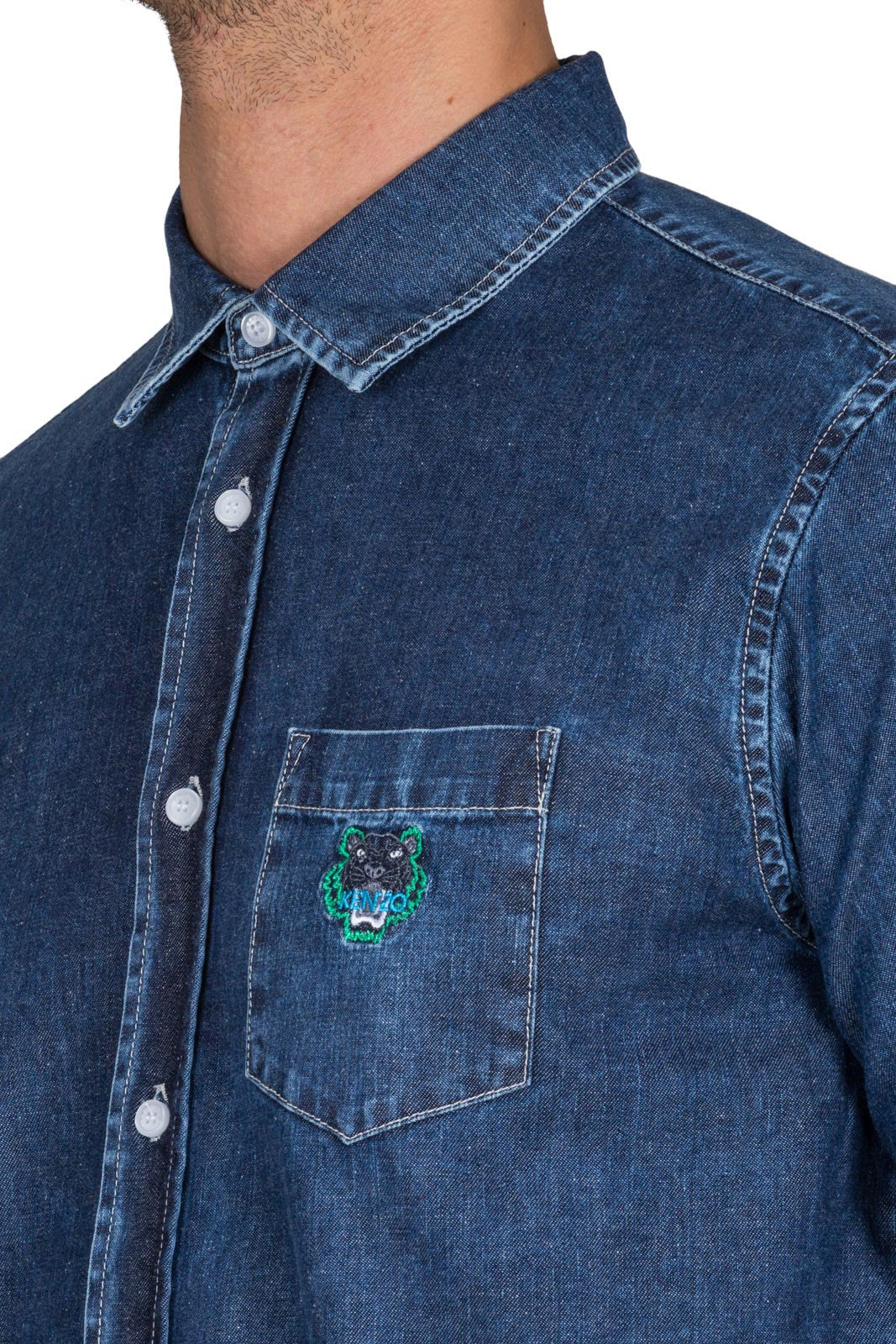 Top stitched button placket with plastic KENZO engraved buttons.