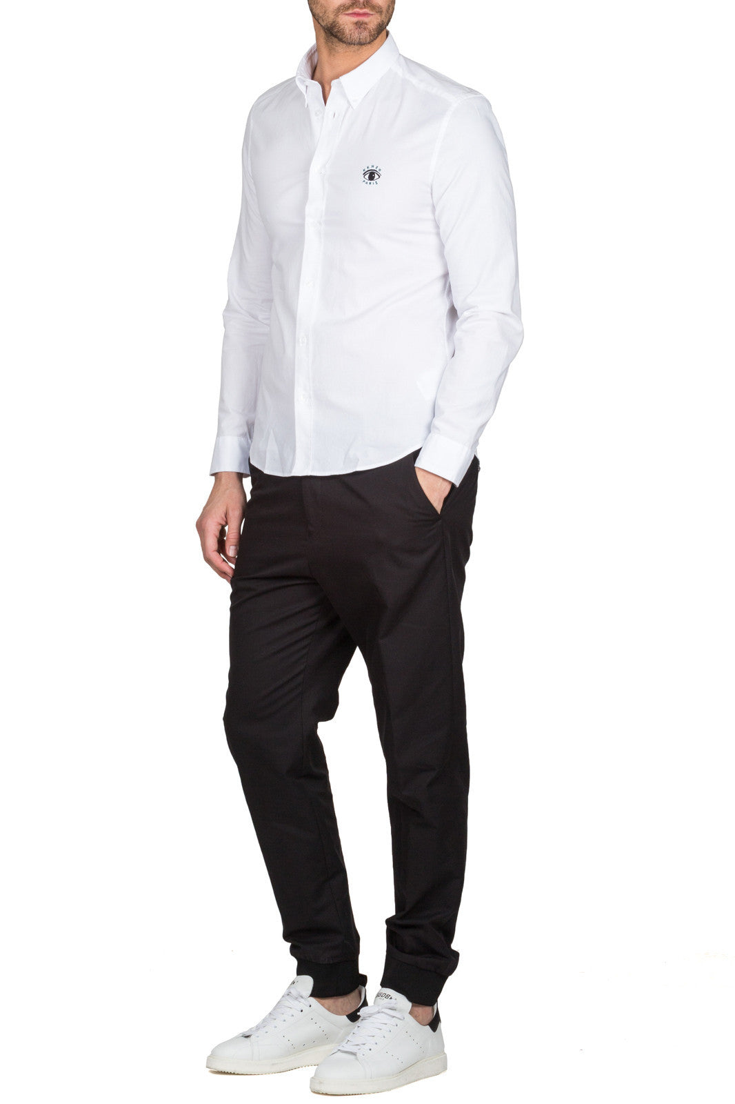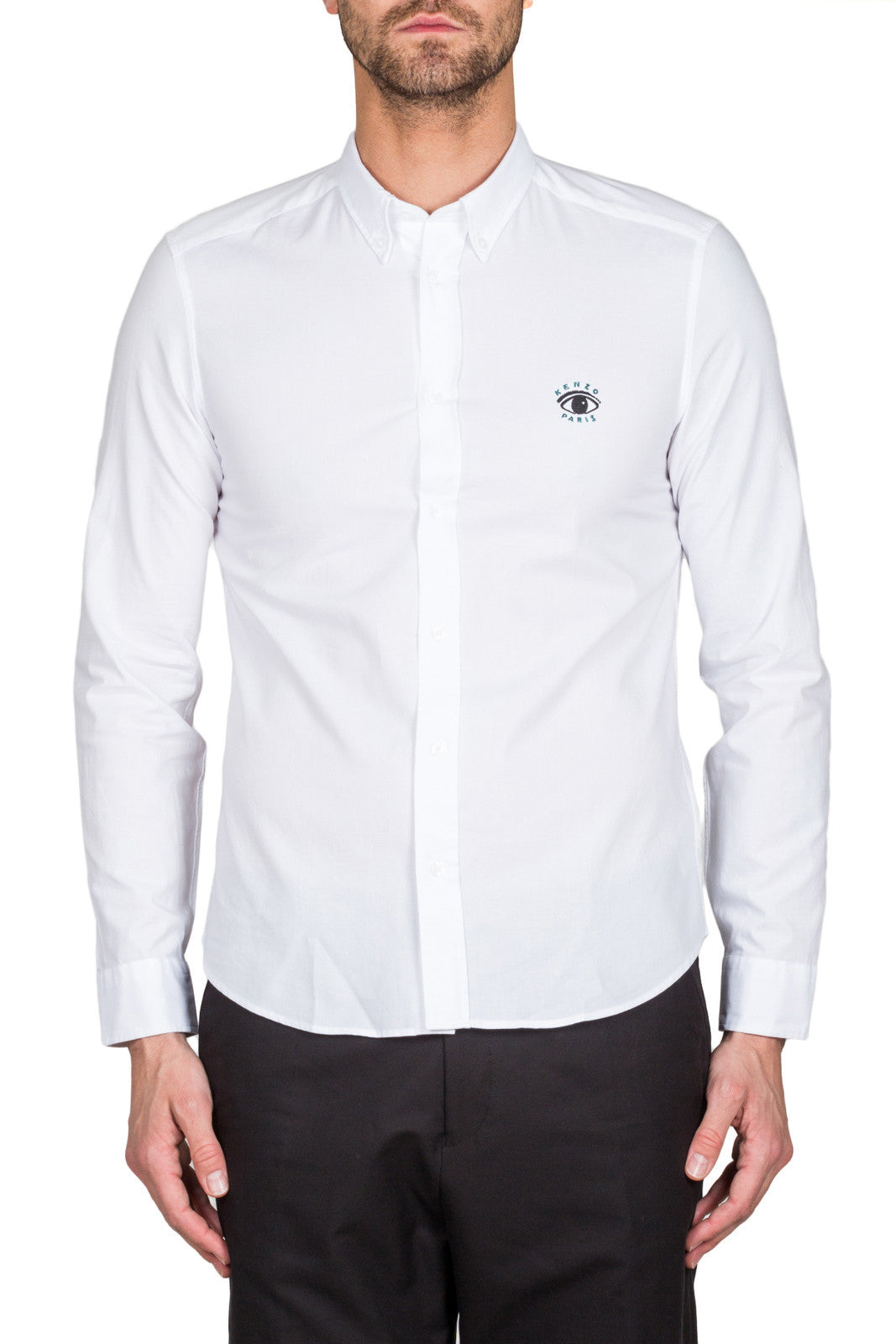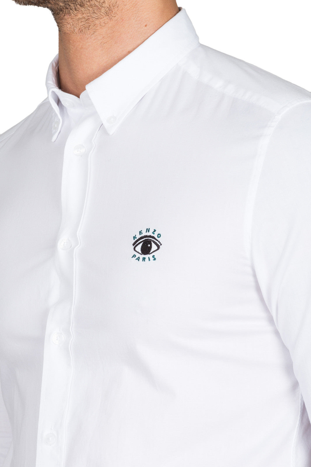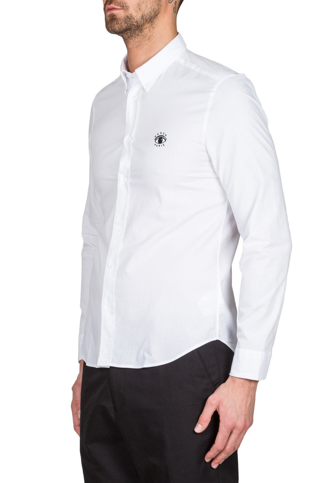 White F755CH2041GE 01White cotton linen-blend eye embroidered shirt from Kenzo.