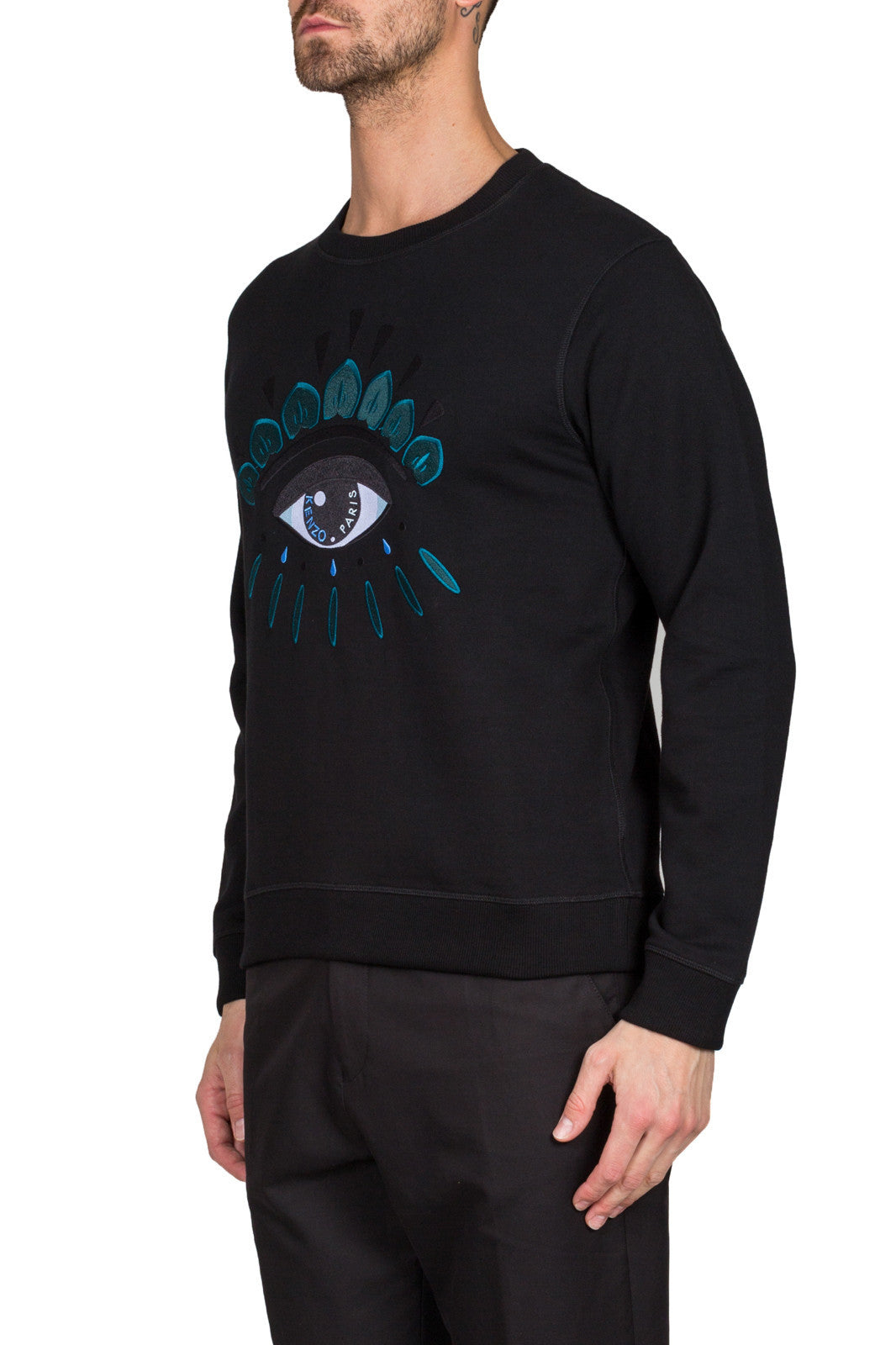 Black F755SW0554XC 99Eye embroidered sweatshirt. Embroidered eye on light brushed cotton fleece. Crew neck collar and long sleeves. Ribbed collar, cuffs and hem.