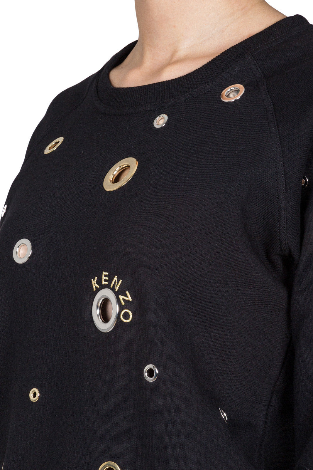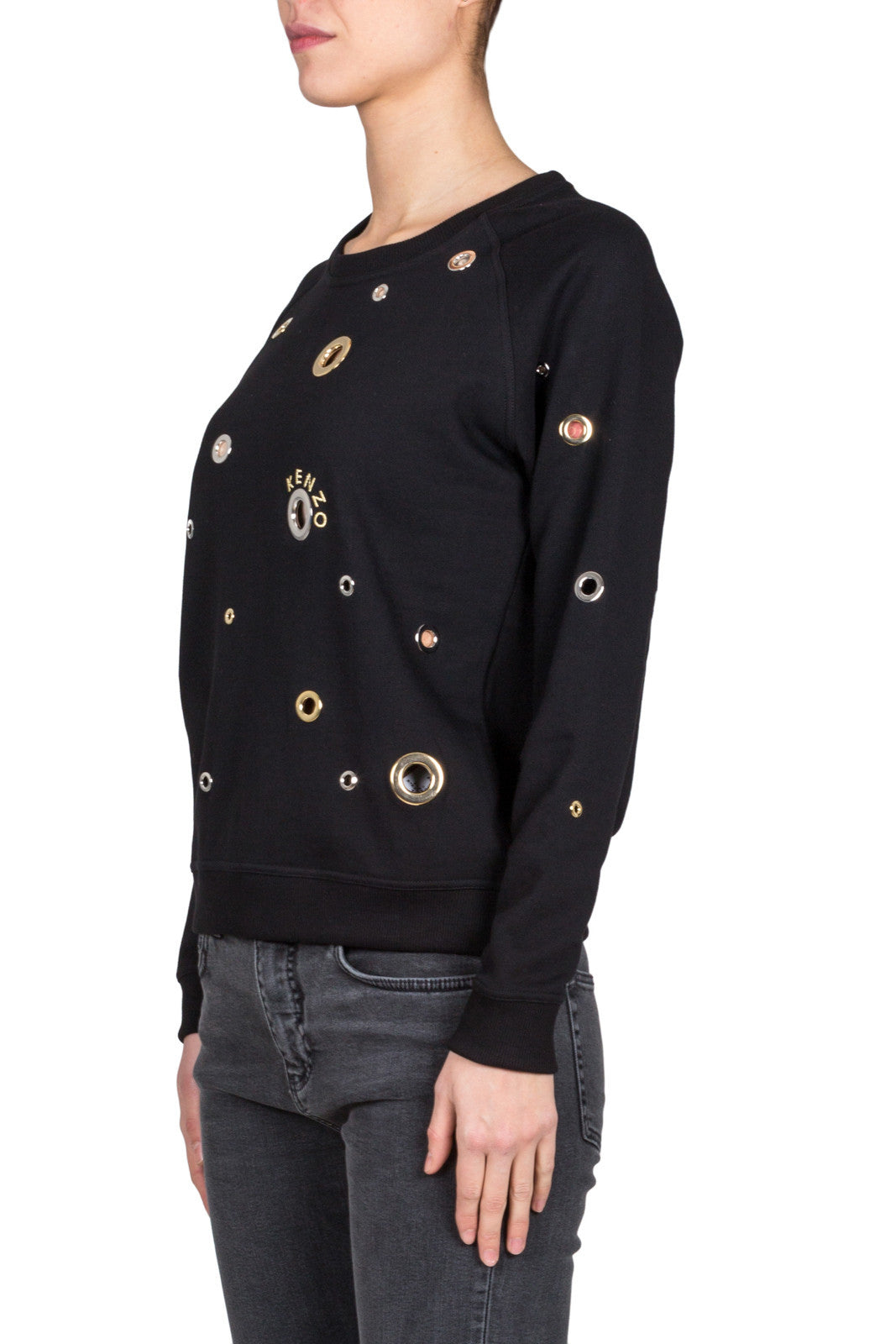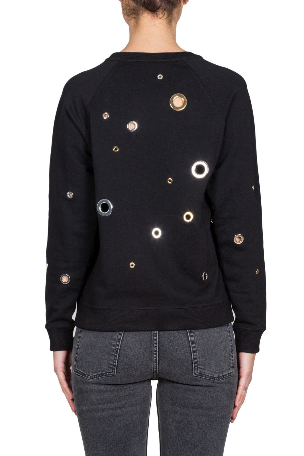 Black F752SW844952 99Light cotton fleece raglan sleeves sweatshirt embellished with gold and silver eyelets.