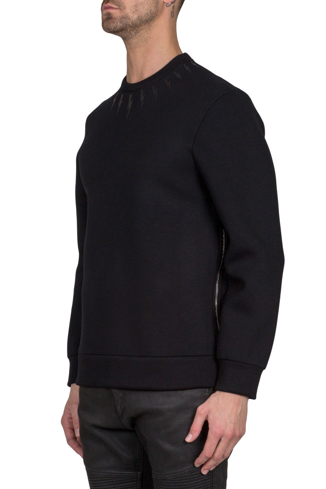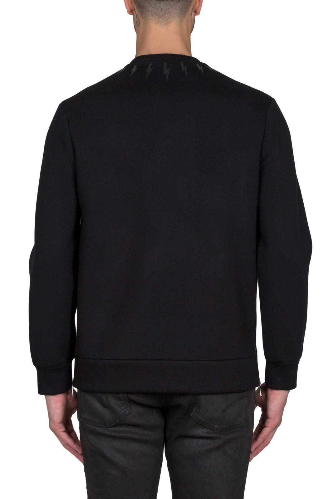 Black PBJS98D E503S 01Black Neil Barrett classic, this lightning bolt sweatshirt features a round neck, long sleeves and side zip details
