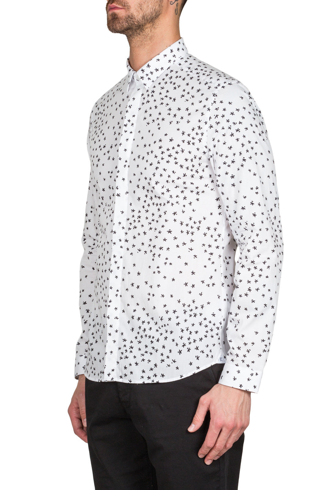 White F755CH1601FR 01Slim fitting business shirt in with Flying K print.