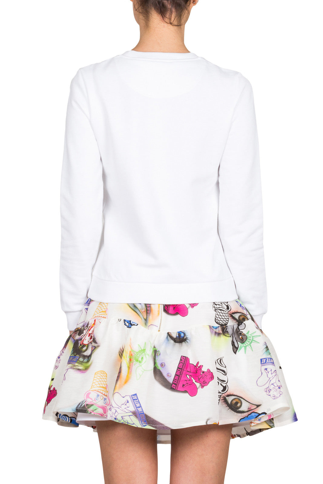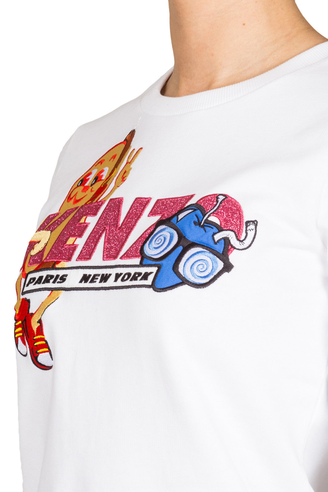White F752SW842952 01KENZO hot dog sweatshirt with glitter logo across front.