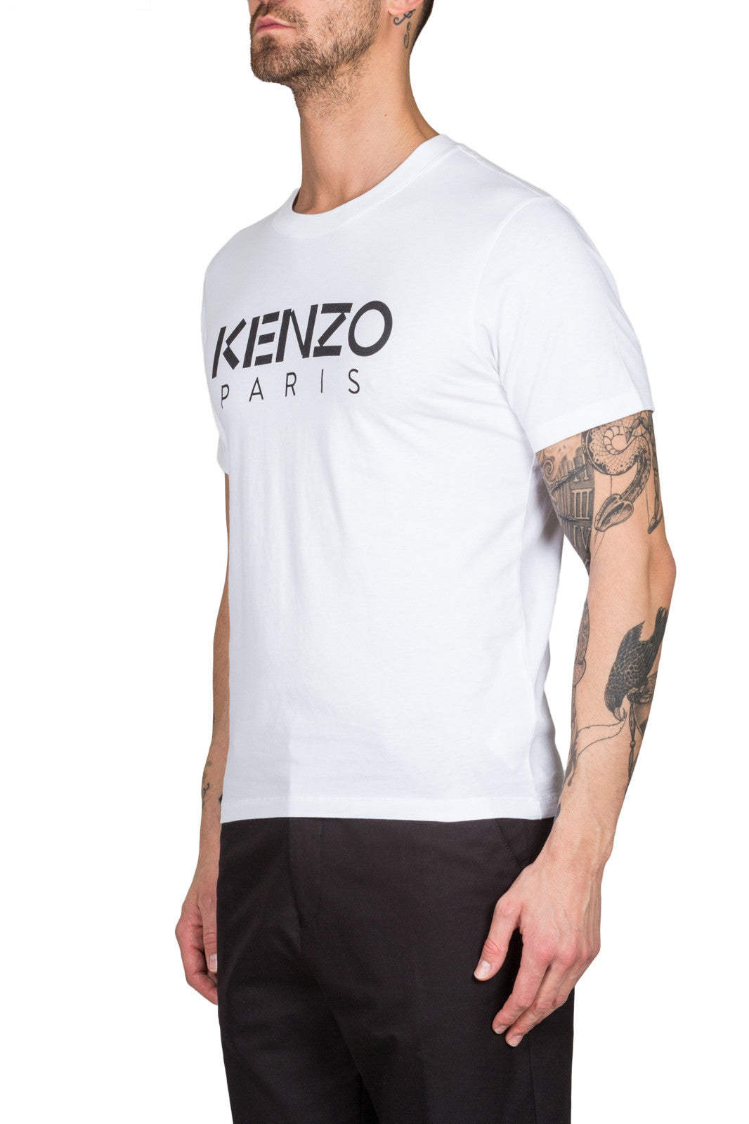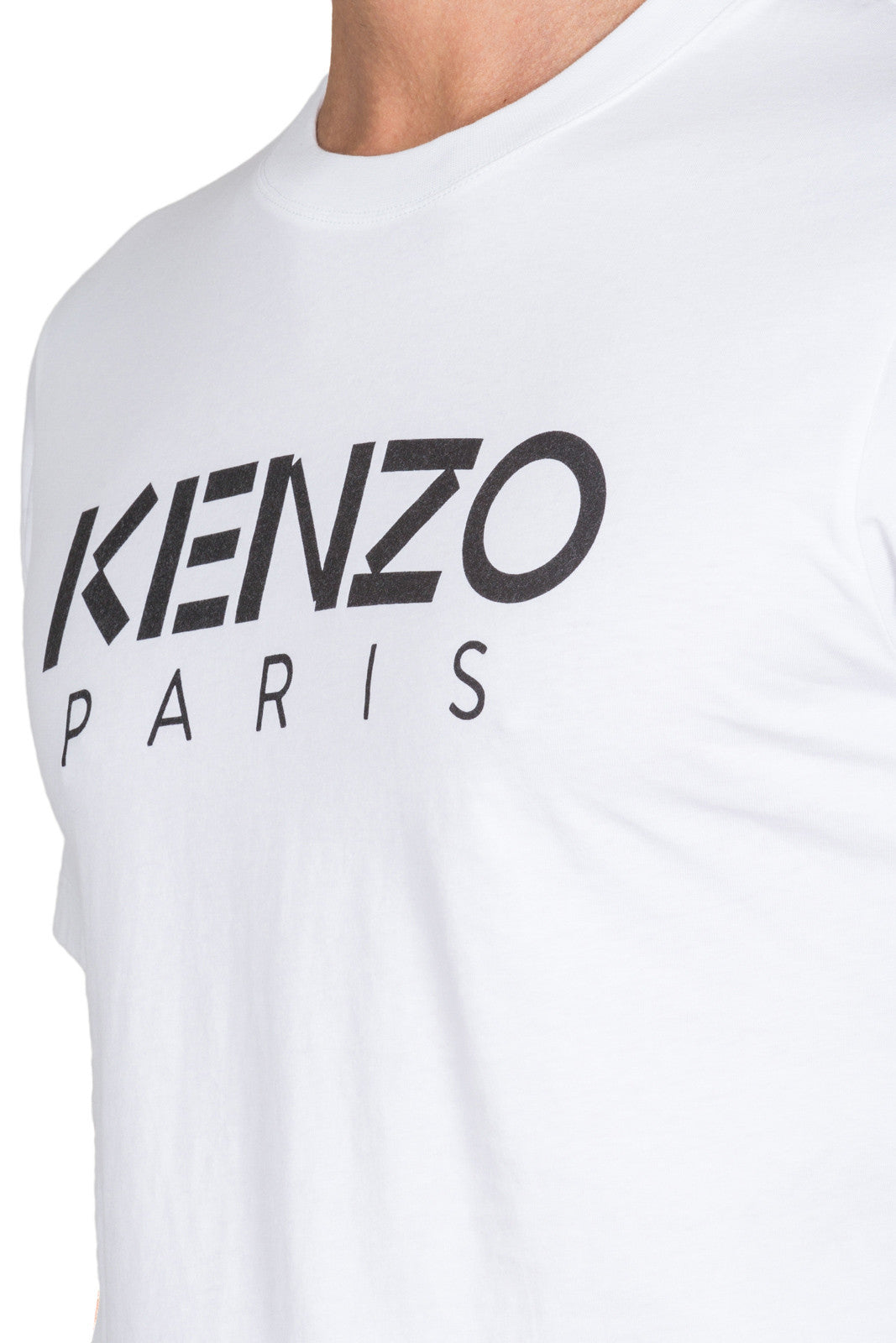 White F755TS0924SG 01Basic t-shirt with KENZO Paris printed across chest.