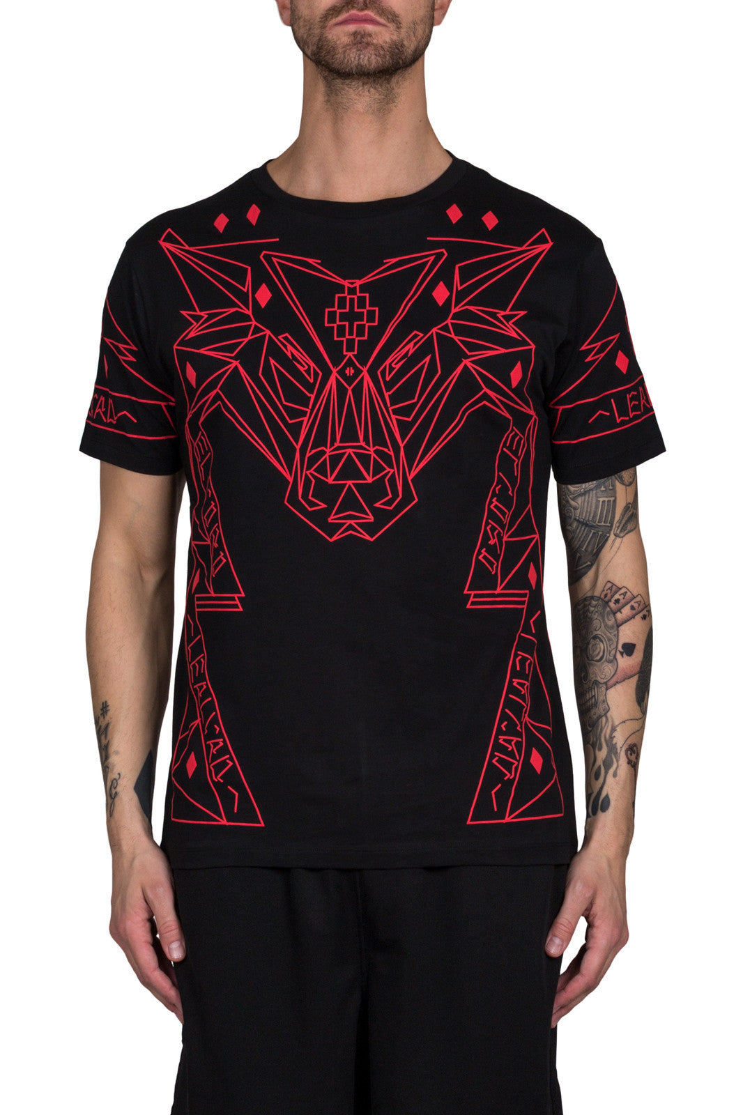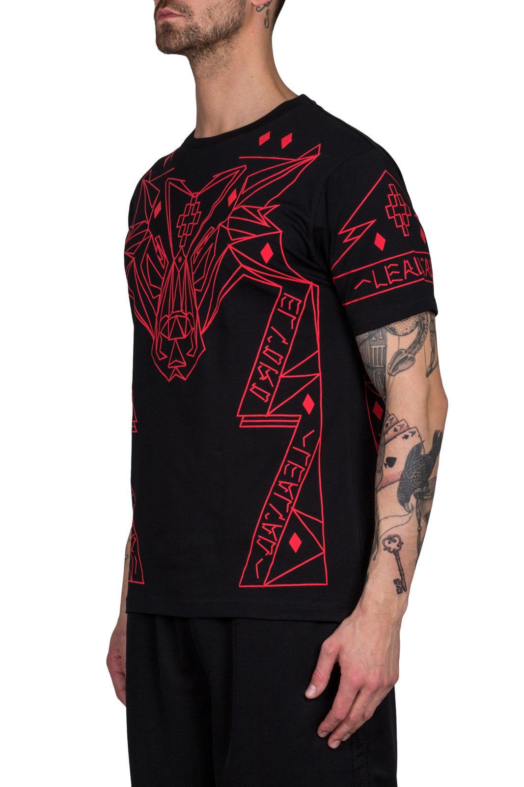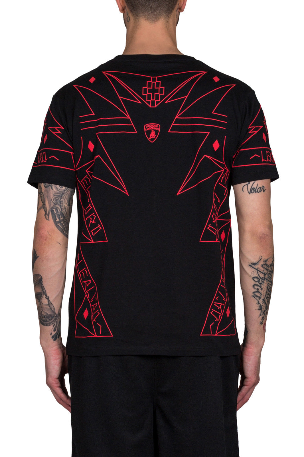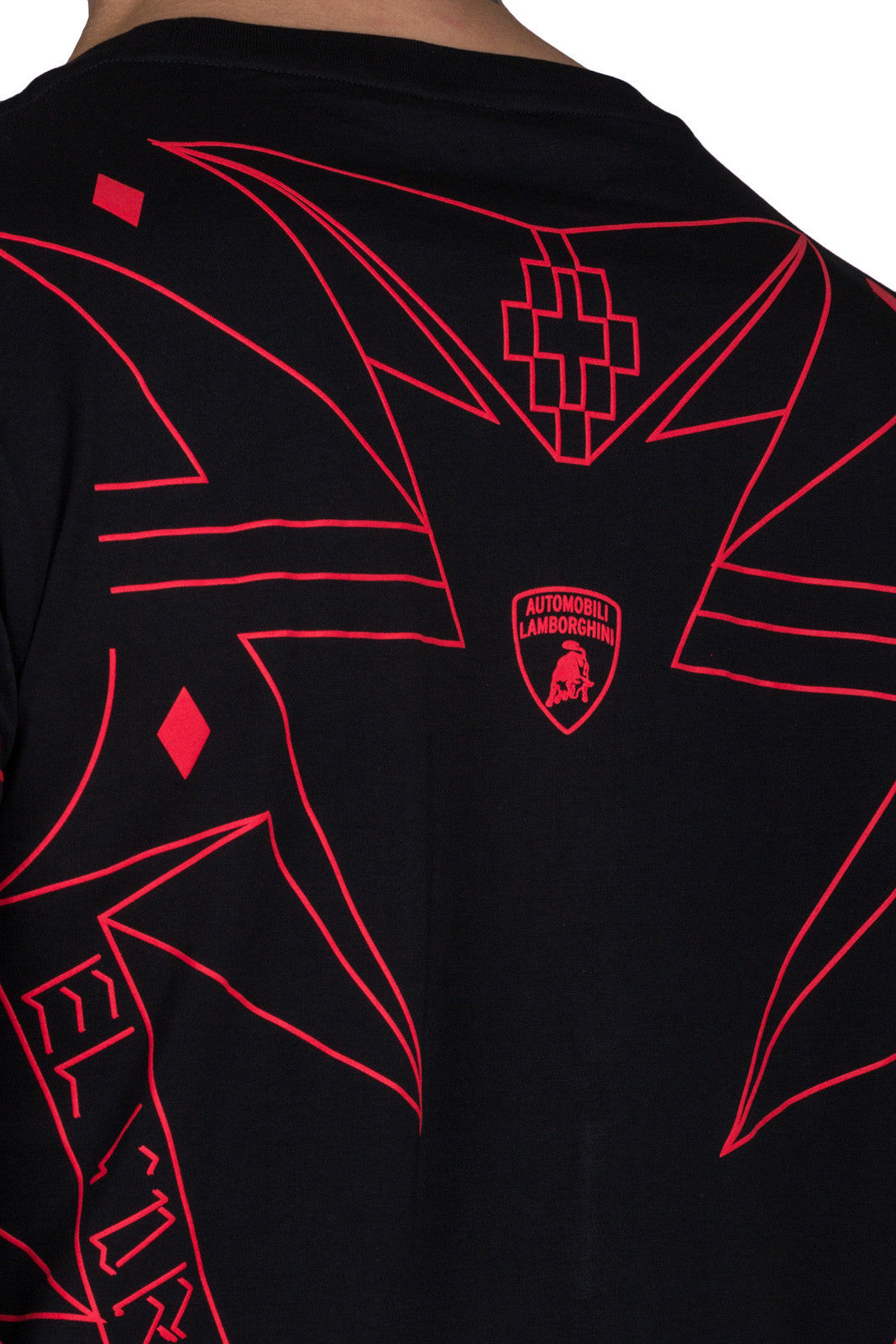 Black Lamborghini t-shirt with all over red print from Marcelo Burlon