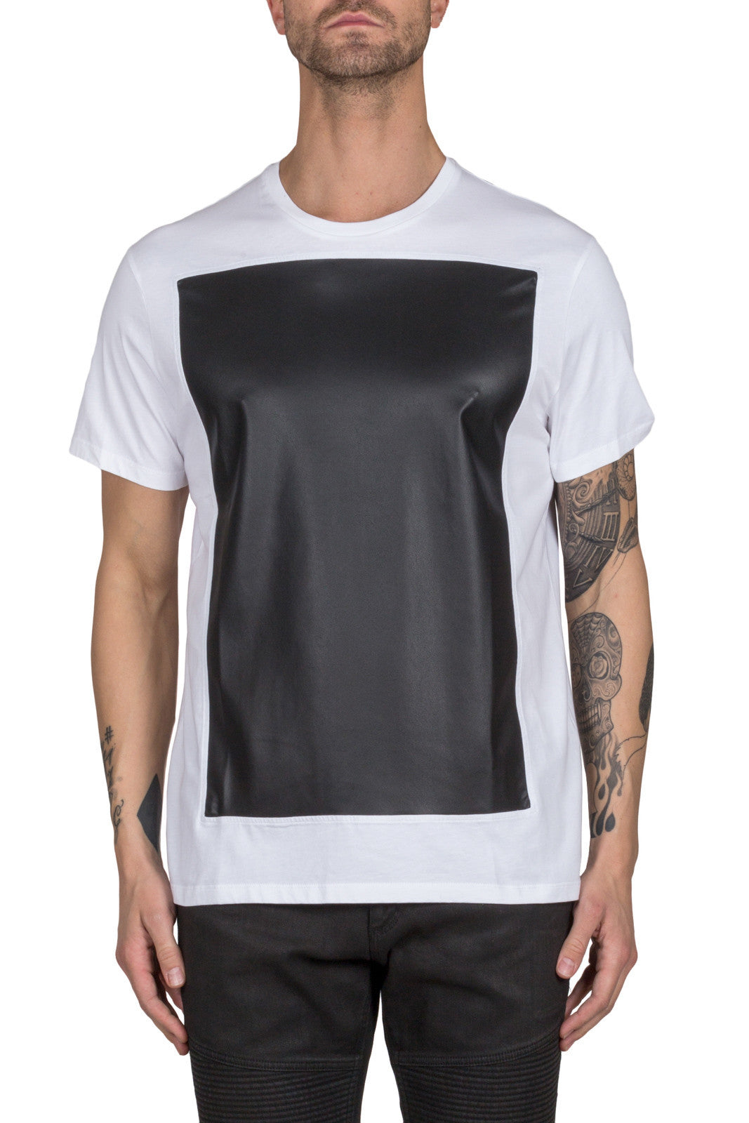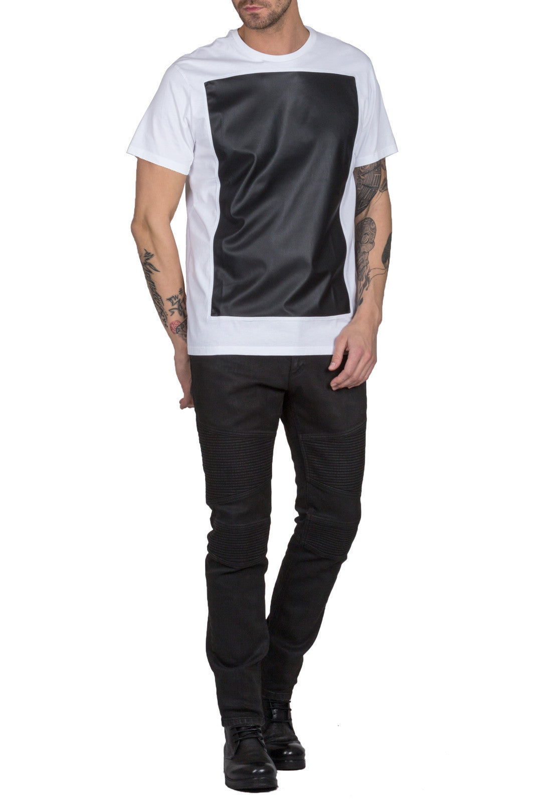 White PBJT190C E515C 526White cotton square detail t-shirt featuring a round neck, short sleeves and a black square patch from Neil Barrett.