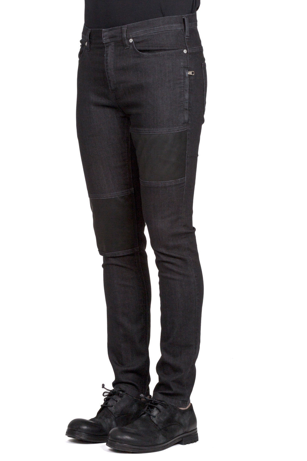 Black PBDE162C E804T 01Black leather patched super skinny jeans from Neil Barrett