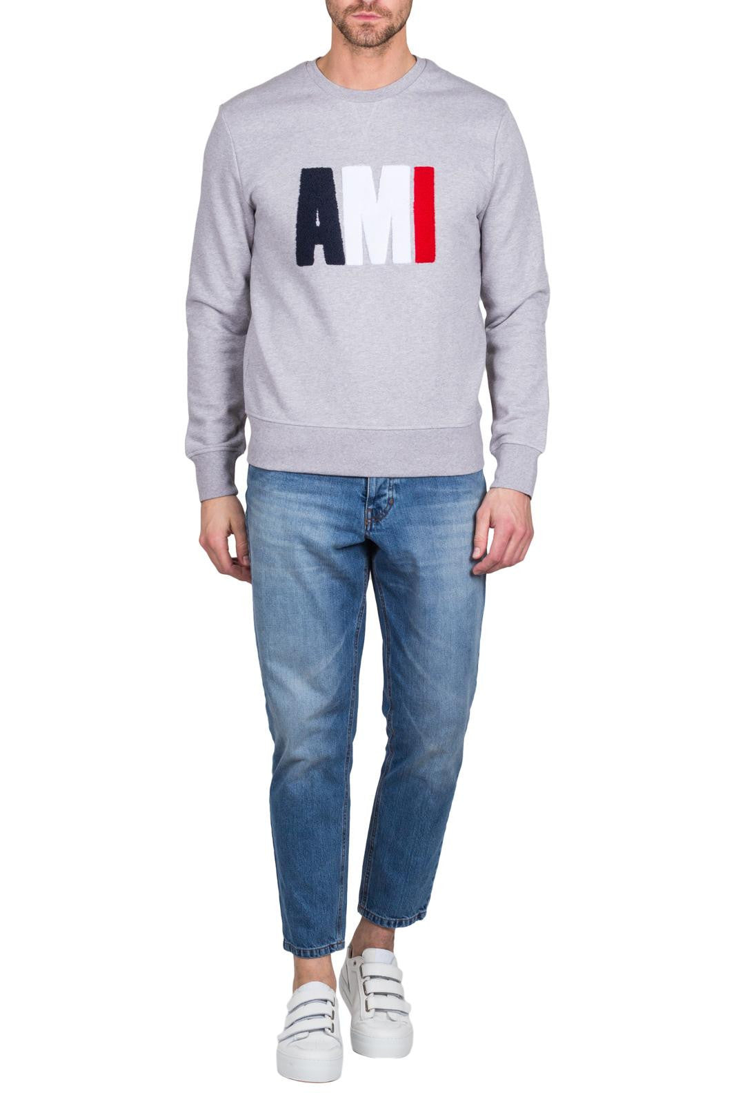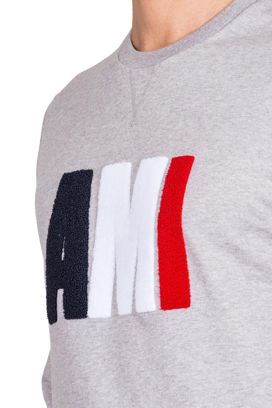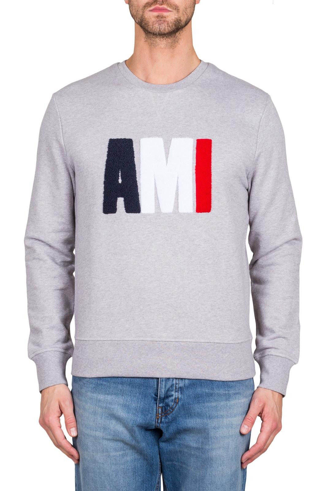 Grey cotton logo appliqué sweatshirt from Ami Alexandre Mattiussi. 100% Cotton Model is 190 cm and wears size L