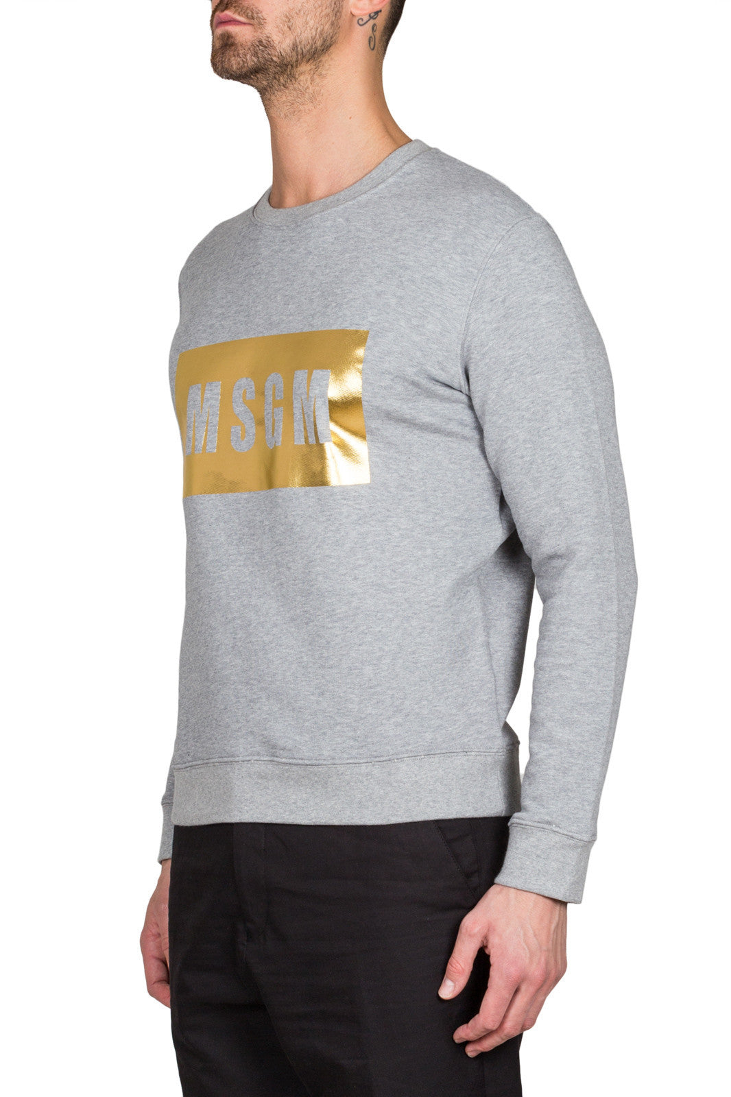 Grey 2240MM68 174292 96Grey cotton sweatshirt with gold box logo from MSGM
