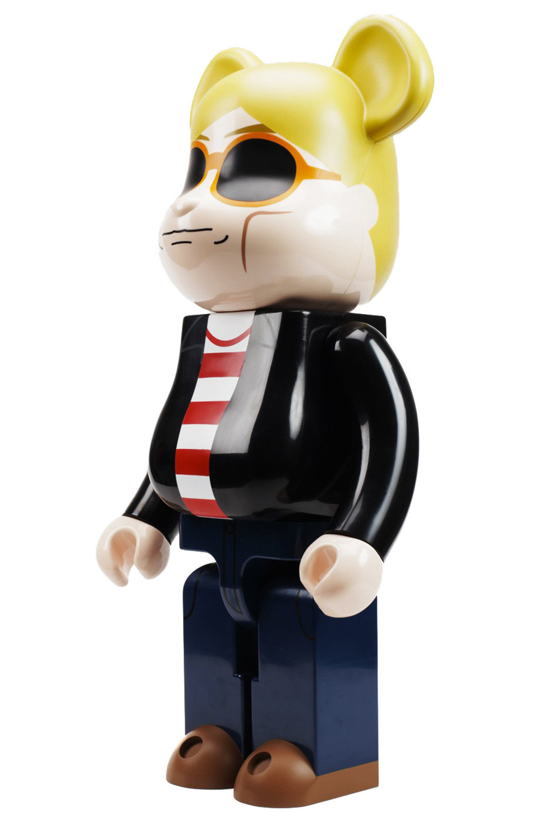 In conjunction with The Andy Warhol Foundation for the Visual Arts, Inc., Medicom Toy has re-produced two special edition Bearbricks and two VCD Andy Warhol figures, these aremodeled off the king of pop art himself.There wouldn't be the term "Pop Culture" if it were not for one man...the legendary Andy Warhol.Now Medicom Toy of Japan has released a pair of Andy Warhol Bearbricks, both in 400% and 1000% sizes. The artwork is silkscreened onto the pieces. These are a must if you collect Andy Warhol, pop culture memorabilia, or Bearbricks. Size:11" - 28 cm