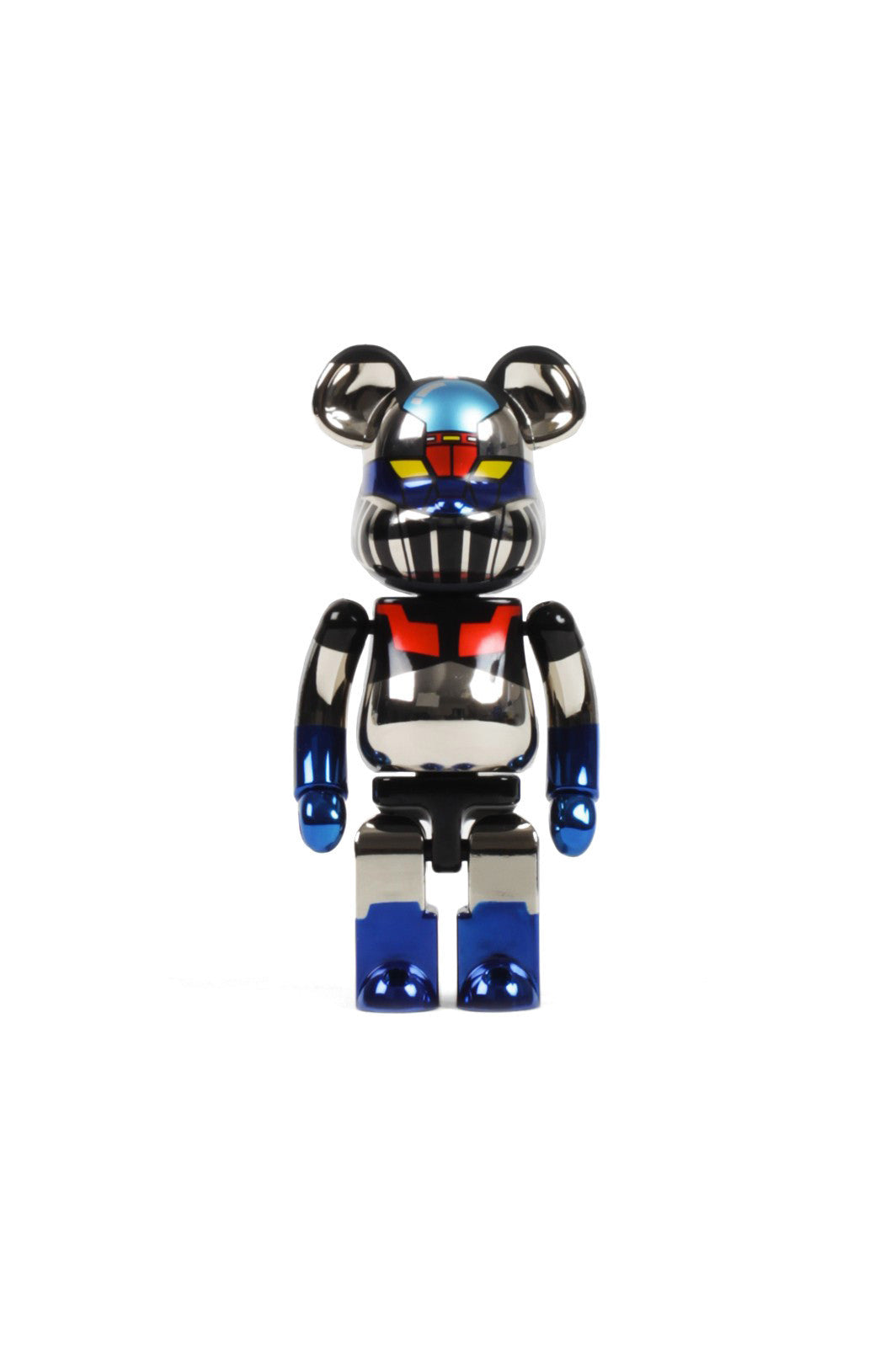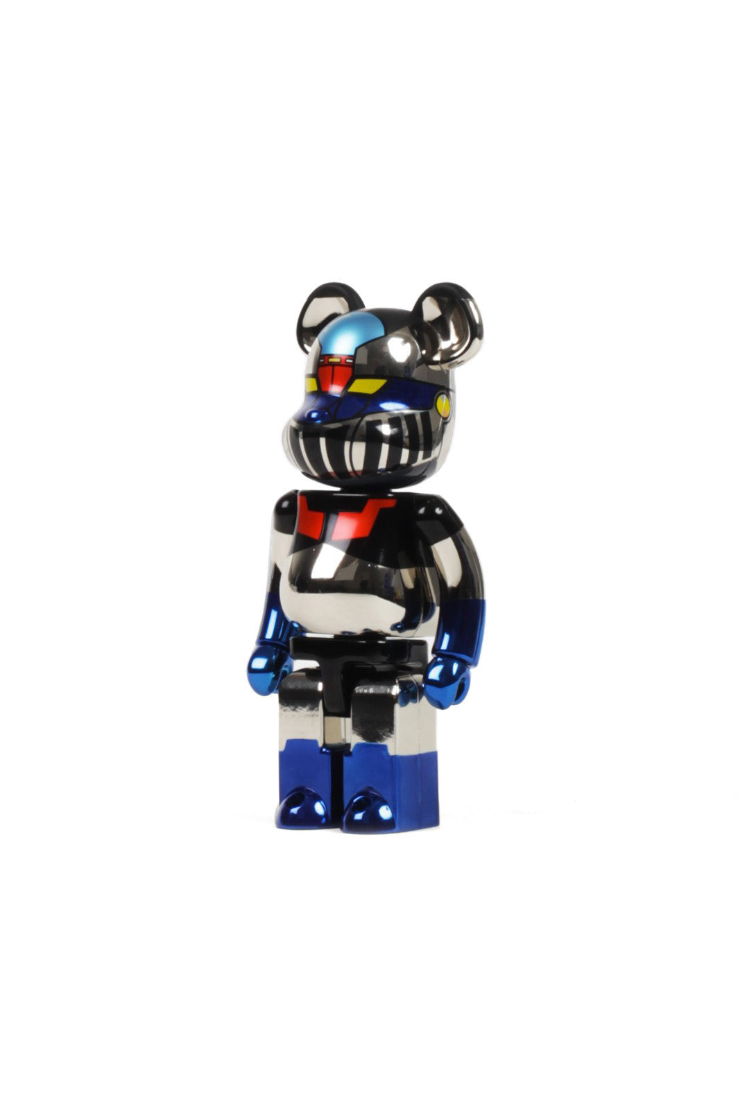 Taking upon the shape of the Super-Alloy Z character from the Japanese robot manga and anime series Mazinger Z. Mazinger Z features a silver body with the red, blue and yellow markings of the super robot.With the Super-Alloy Bearbricks, Medicom continues their high-end line of Chogokin bearbricks, these are the specially plated editions. Made entirely of Metal this145mm-tall toy weighs about 400 grams, perfect as a paper-weight. Size:6" - 15 cm