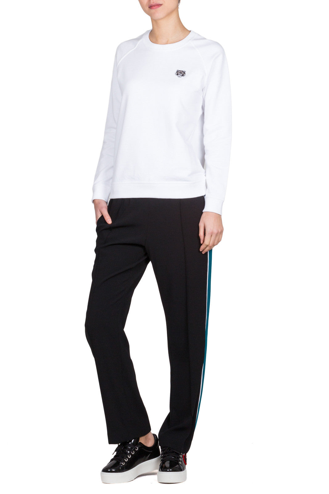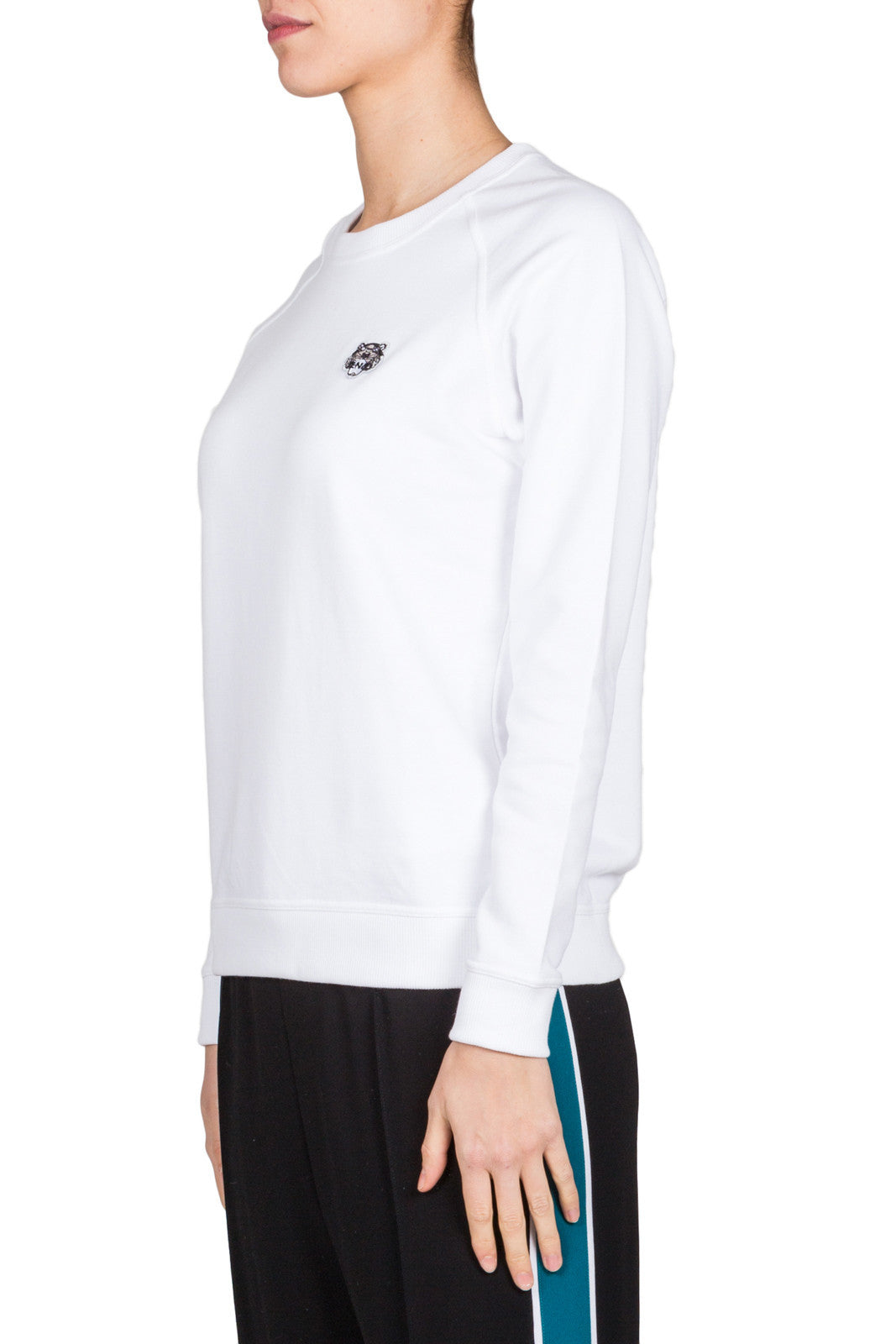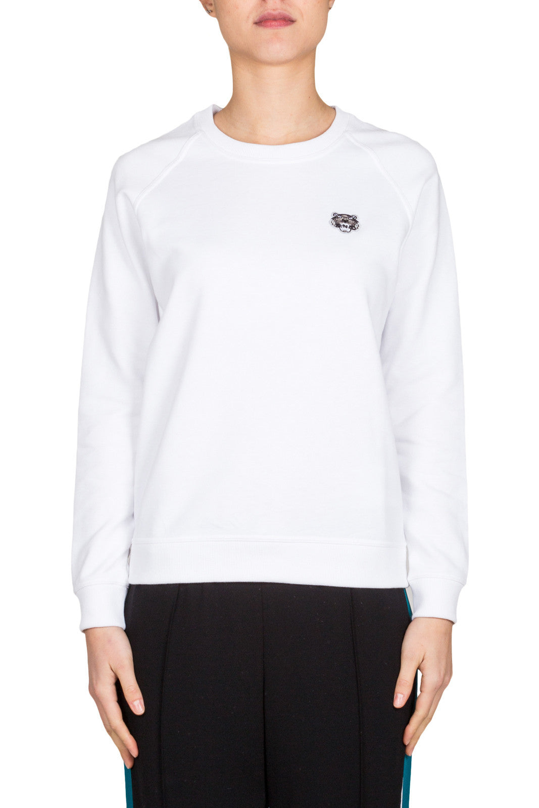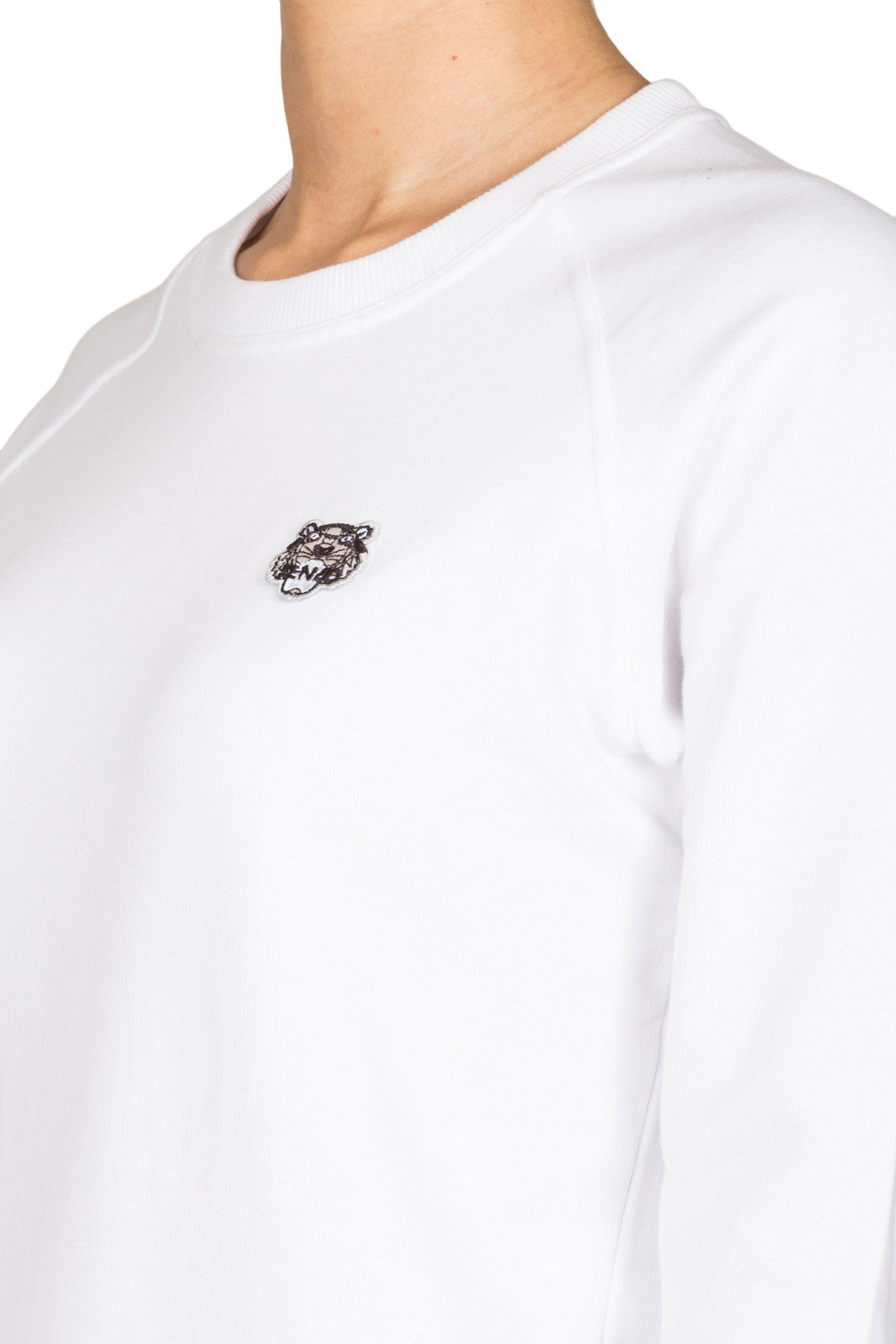 White F752SW796952 01White cotton Mini Tiger sweatshirt features a ribbed round neck, long sleeves and a ribbed hem and cuffs from Kenzo.