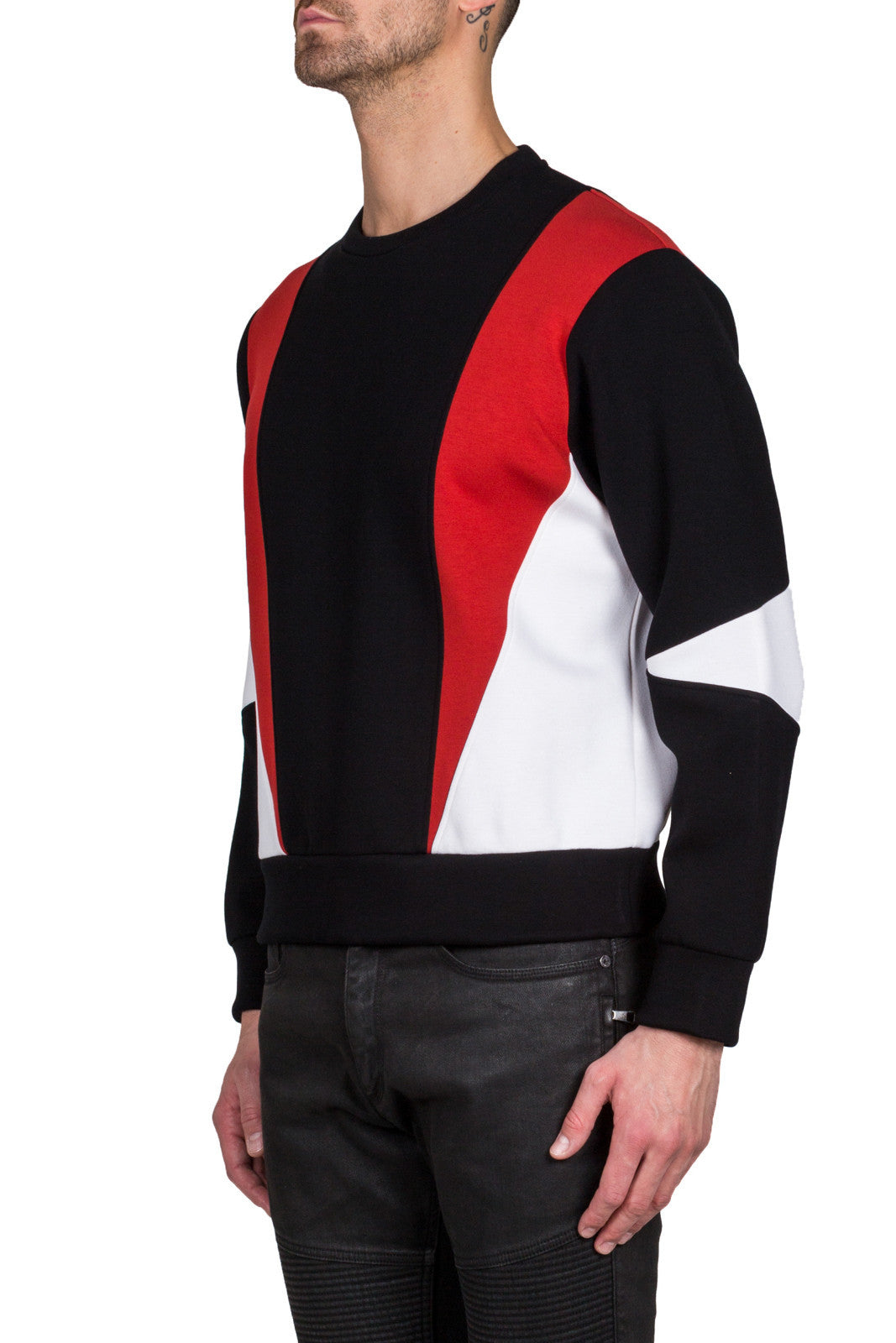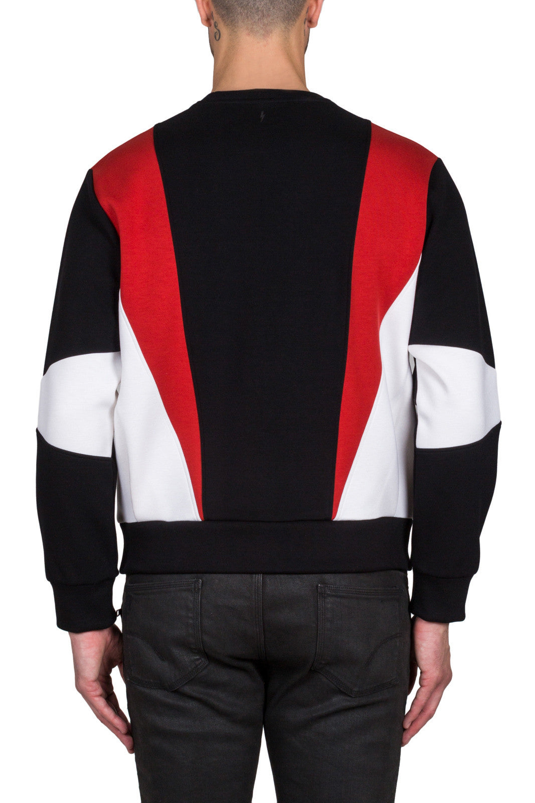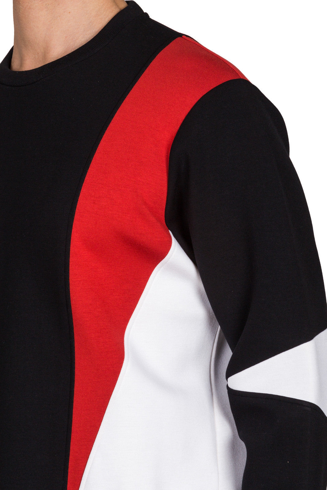 Black, red and white stretch cotton blend geometric sweatshirt featuring a round neck and long sleeves from Neil Barrett.