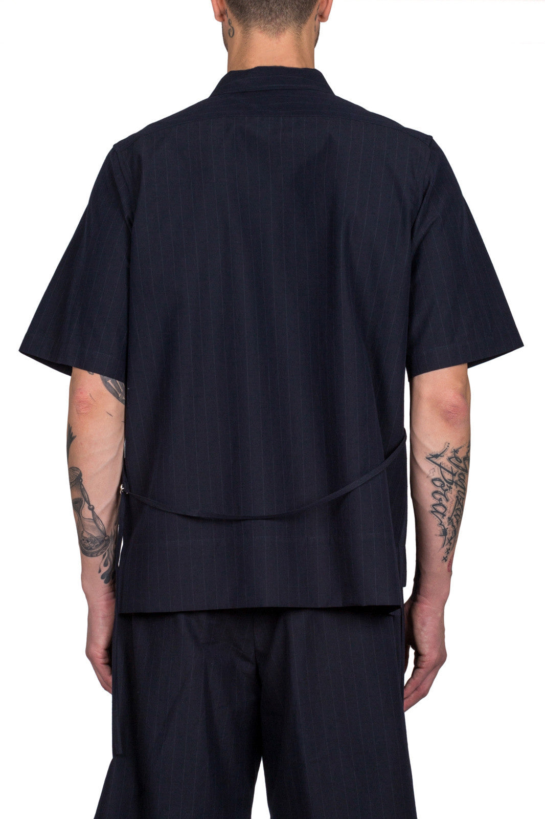 Blue short sleeve oversized striped shirt from Maison Flaneur