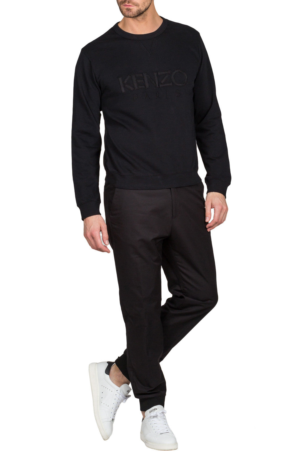 Black F755SW1484MC 99Long sleeve sweatshirt with KENZO Paris logo appliqué embroidered on chest.