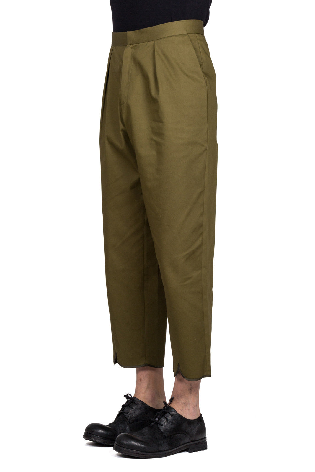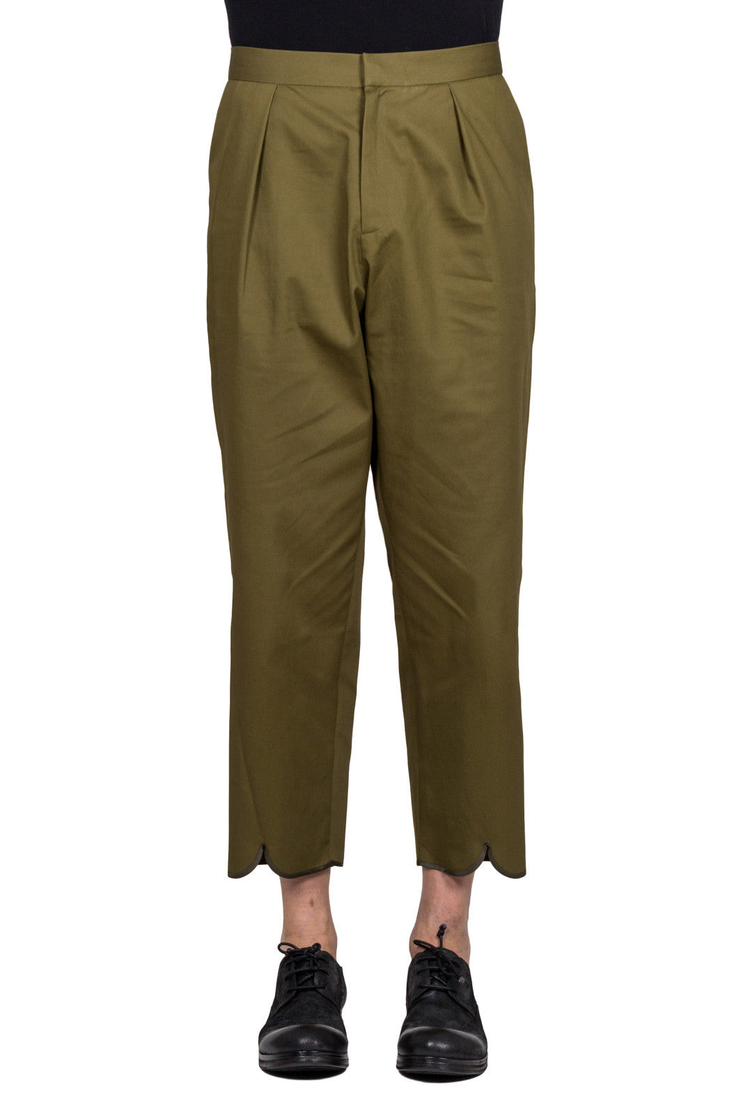 Green cotton blend pleat back trousers from J.W.Anderson.
