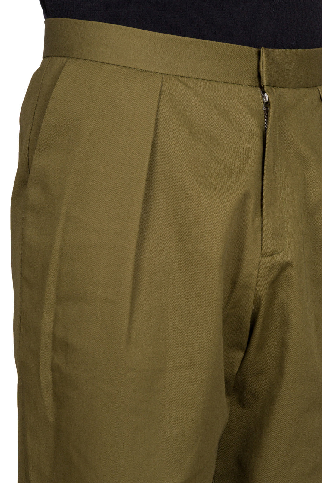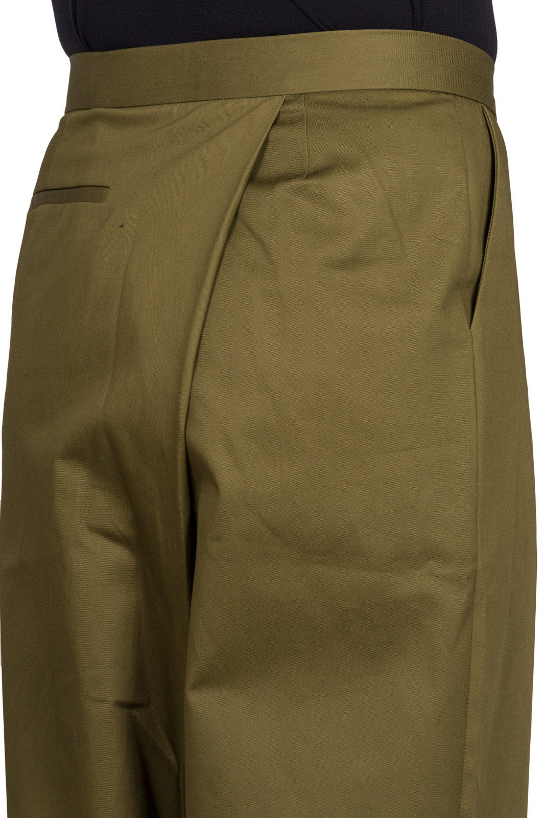 Green TR03MS17 105 570Green cotton blend pleat back trousers from J.W.Anderson.