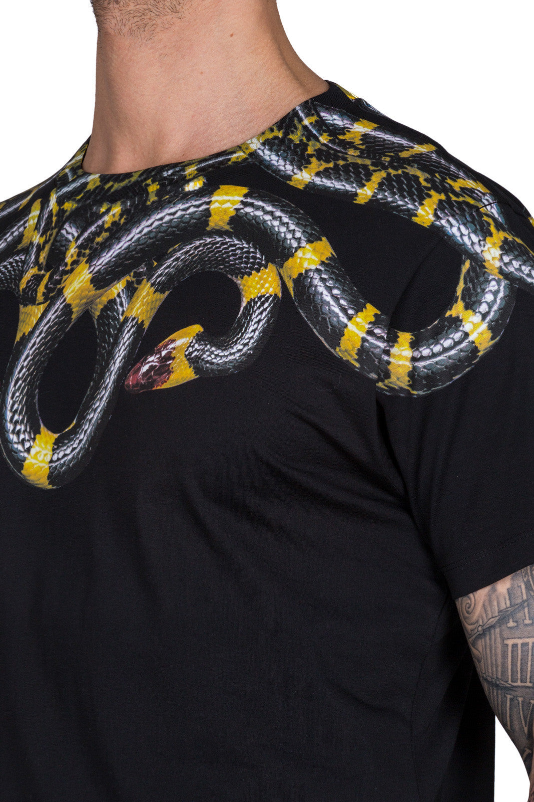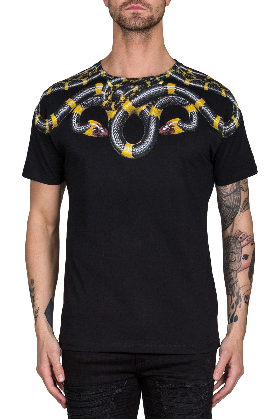 Black t-shirt with Sabino print around the collar from Marcelo Burlon