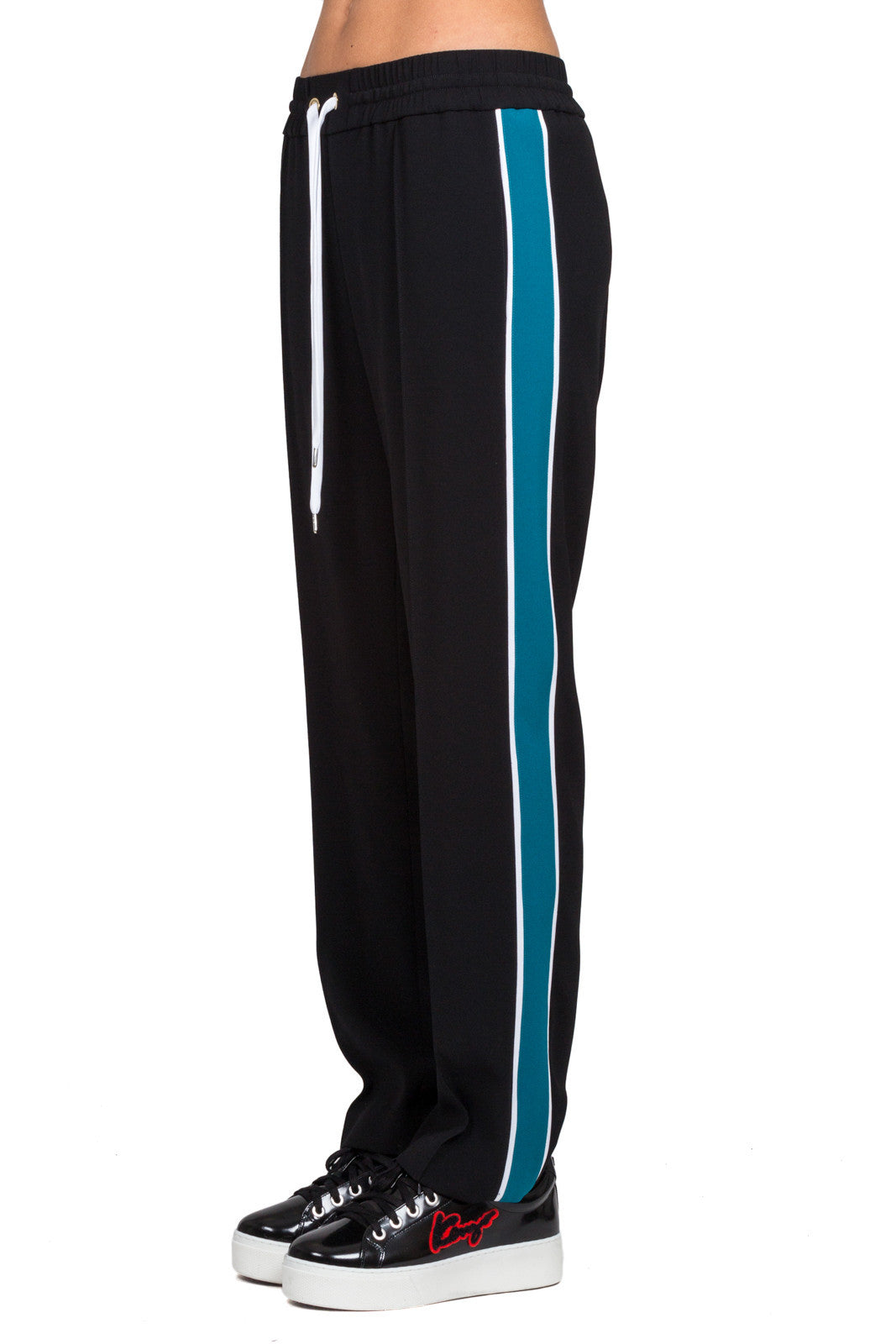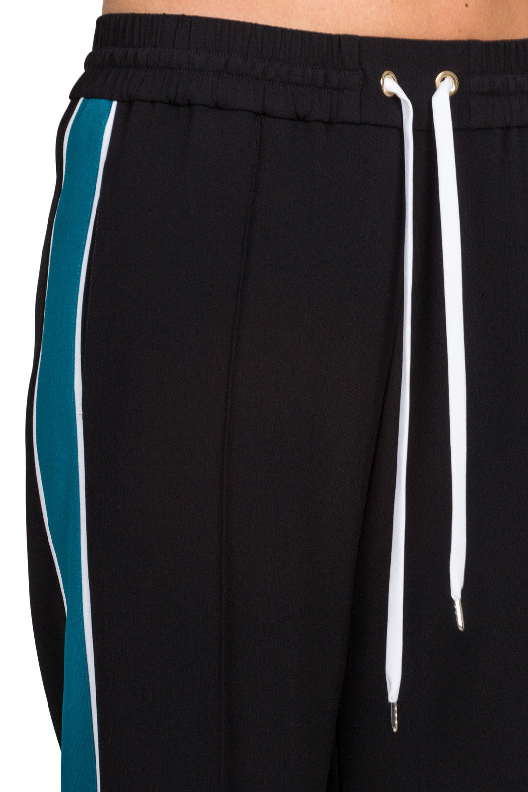 Gold eyelets at the front of the pant creating the opening for the drawstring waist.