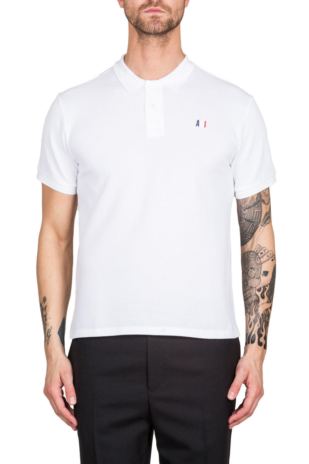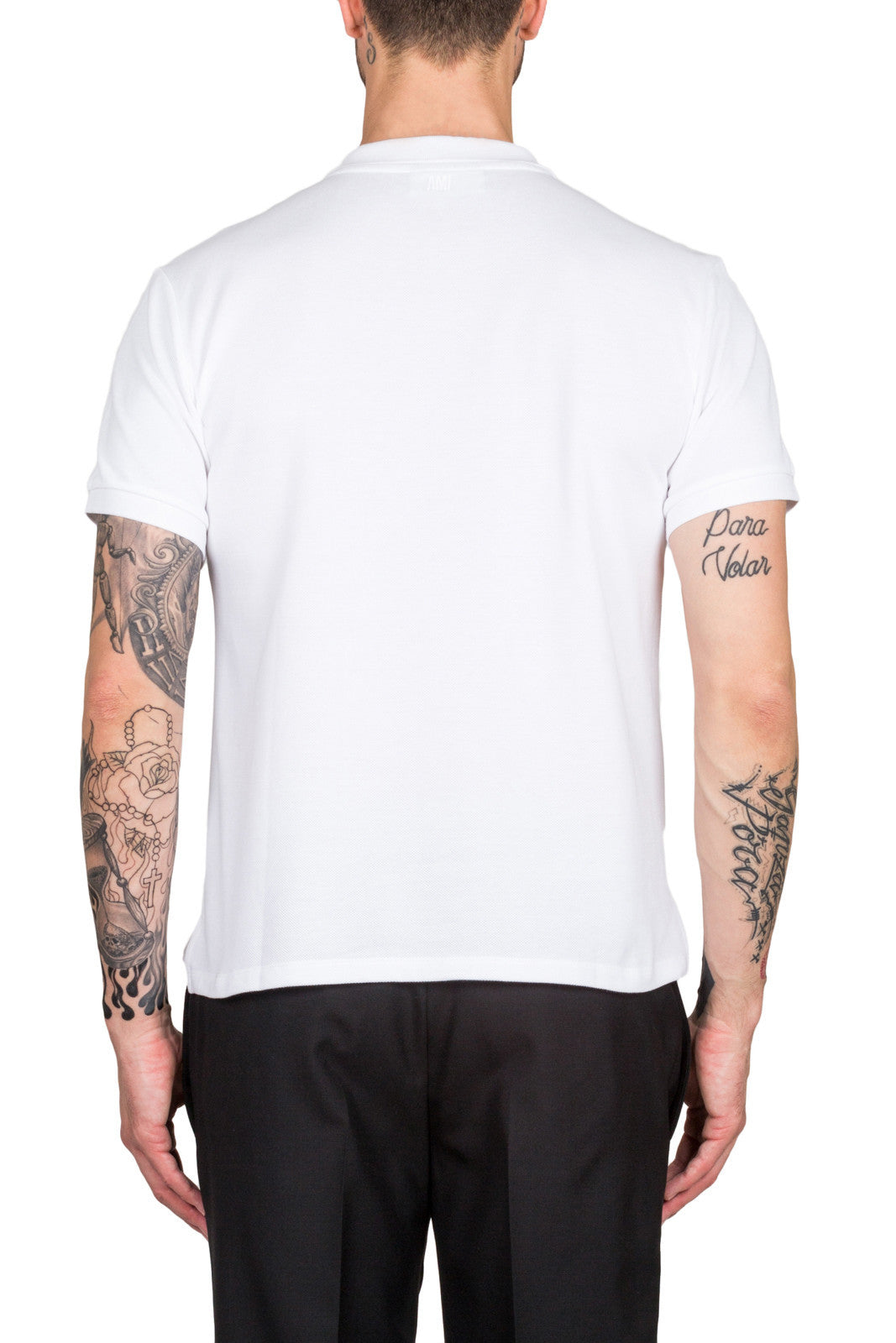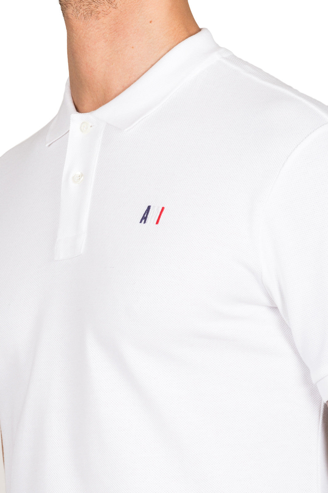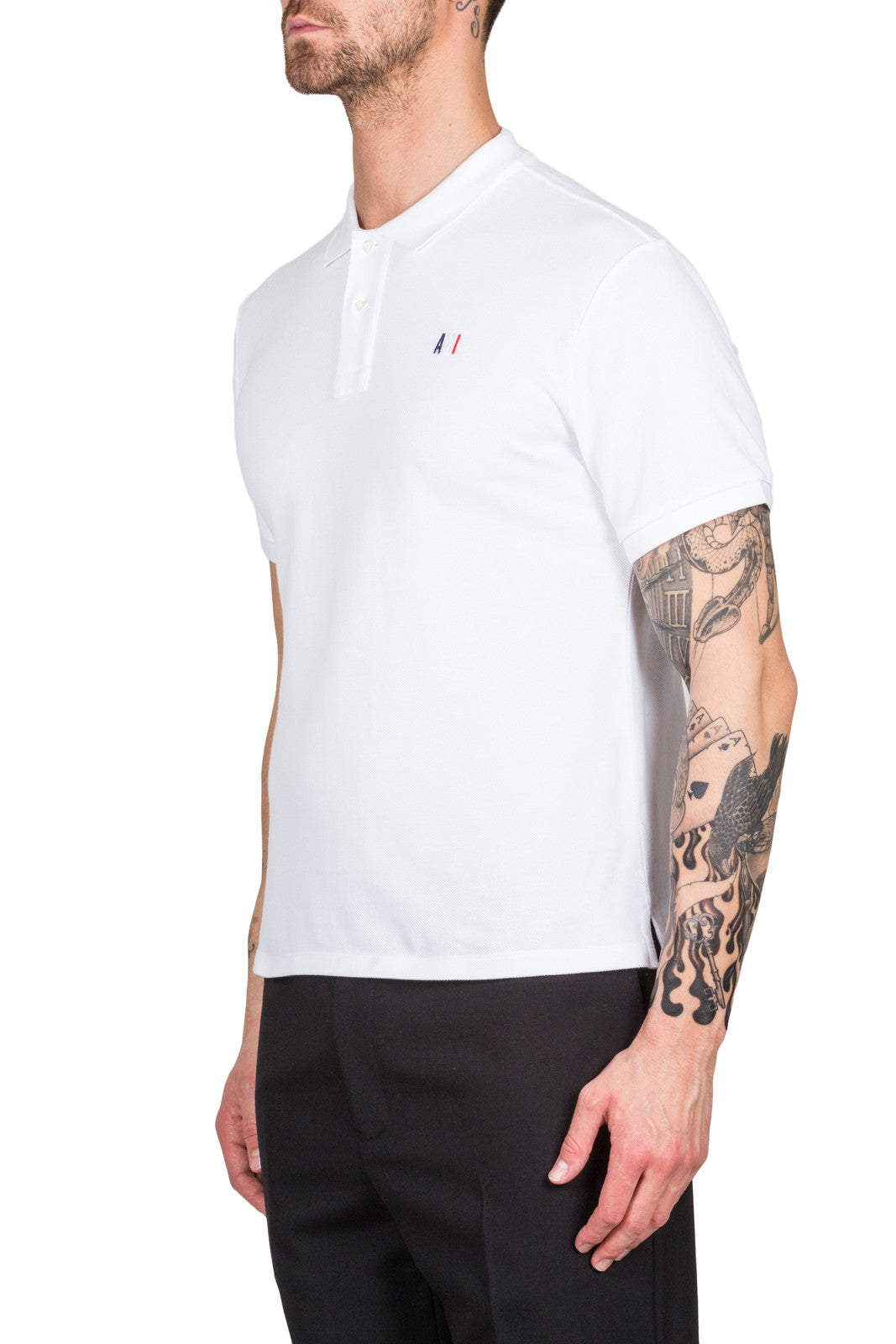 Classic white cotton polo shirt. It features a classic polo collar, a front button fastening and a small tricolour logo at the chest.