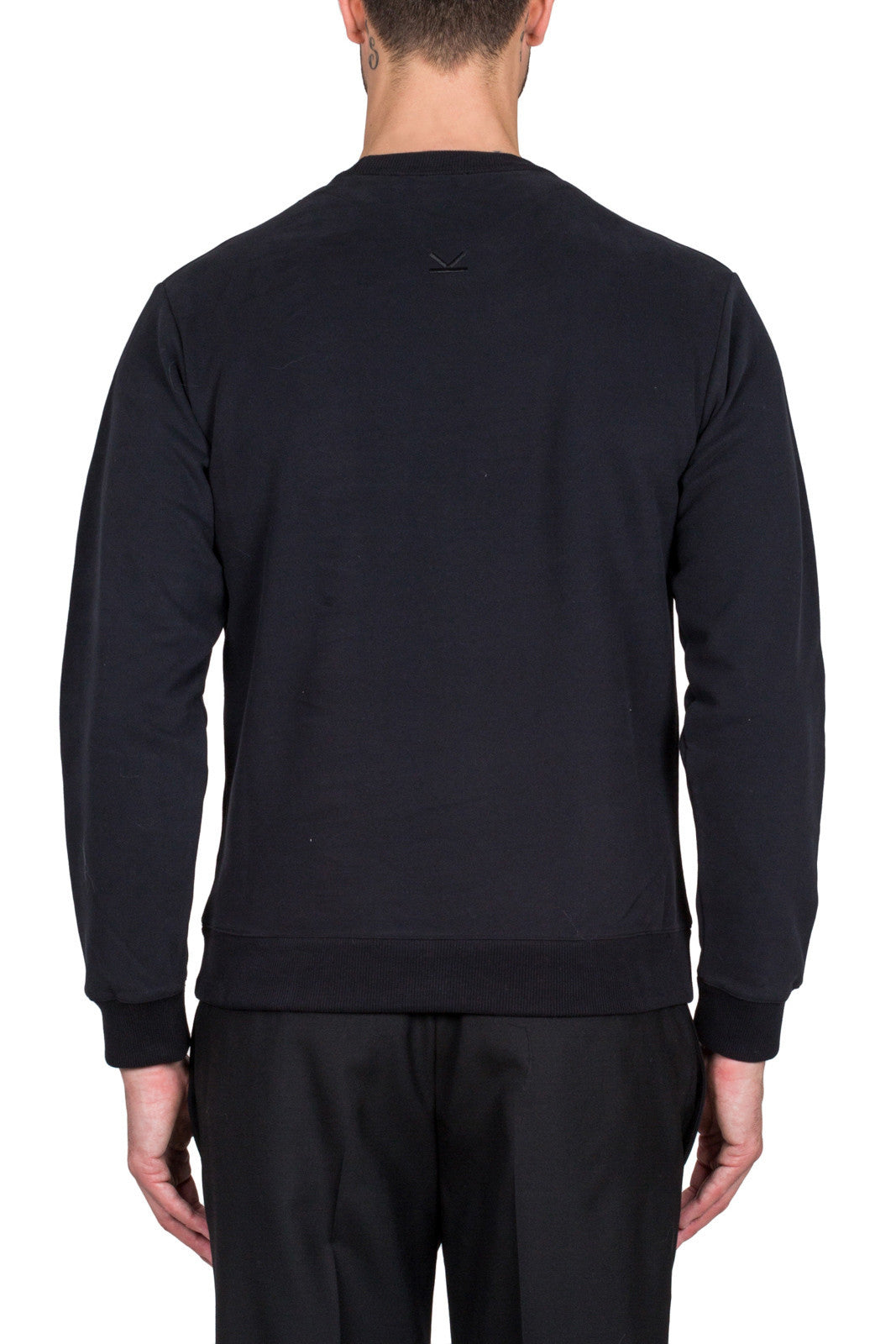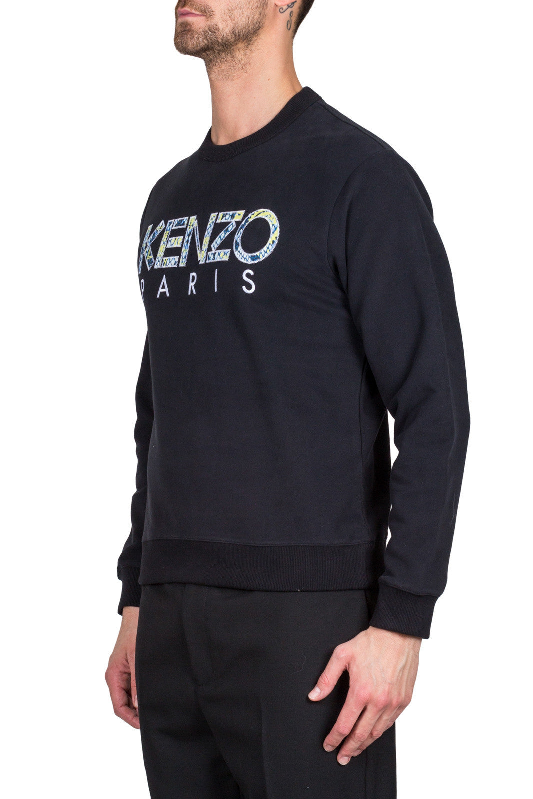 Black F755SW0004MB 99Paris Sweatshirt in emerised cotton fleece. KENZO Paris logo embellished with Snake Flyer Print insert. Round collar and long sleeves. Ribbed cuffs, hem and crew neck. V shaped Upside down K branding embroidery on back yolk.