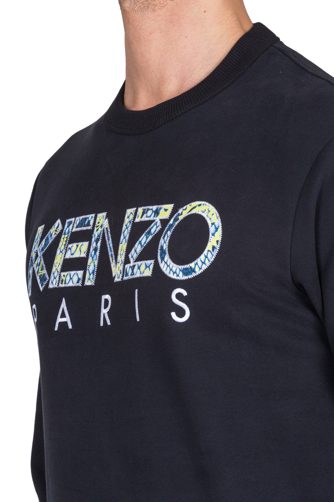 Paris Sweatshirt in emerised cotton fleece. KENZO Paris logo embellished with Snake Flyer Print insert. Round collar and long sleeves. Ribbed cuffs, hem and crew neck. V shaped Upside down K branding embroidery on back yolk.