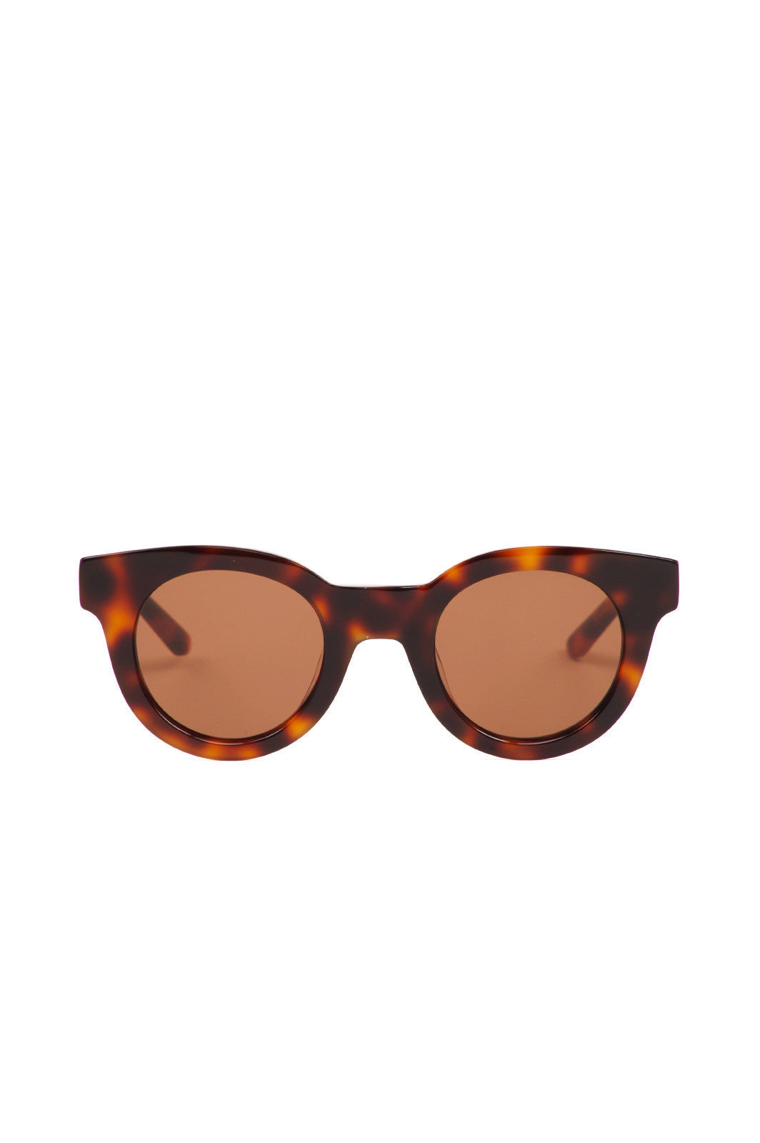 Original tortoise patterned slightly thicker round frame in brown and yellow handMade of Italian acetate. Green Carl Zeiss lenses with 100% UV protection and a five bar hinge with two visible rivets on temple. Comes in a hard case and a glossy paper outerbox.
