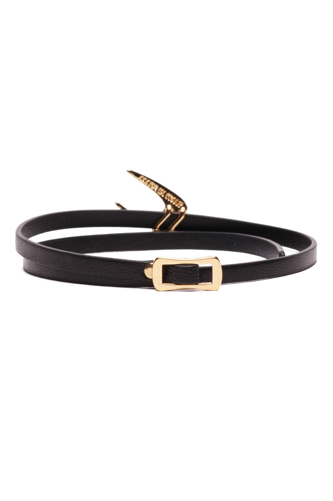 Adjustable nappa leather double-wrapped bracelet in black.