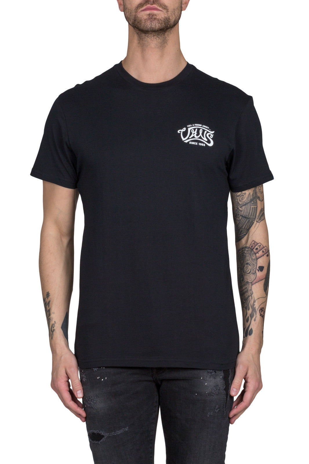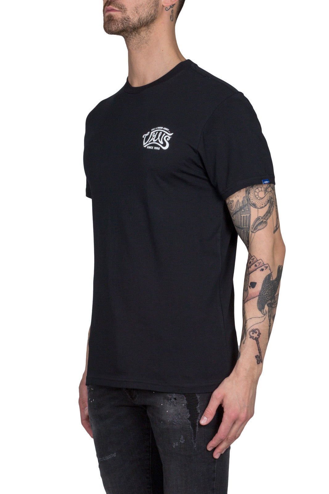 Black VA3138BLKThe Tell A Friend T-Shirt is a 100% combed ringspun cotton t-shirt with left chest and back graphics.