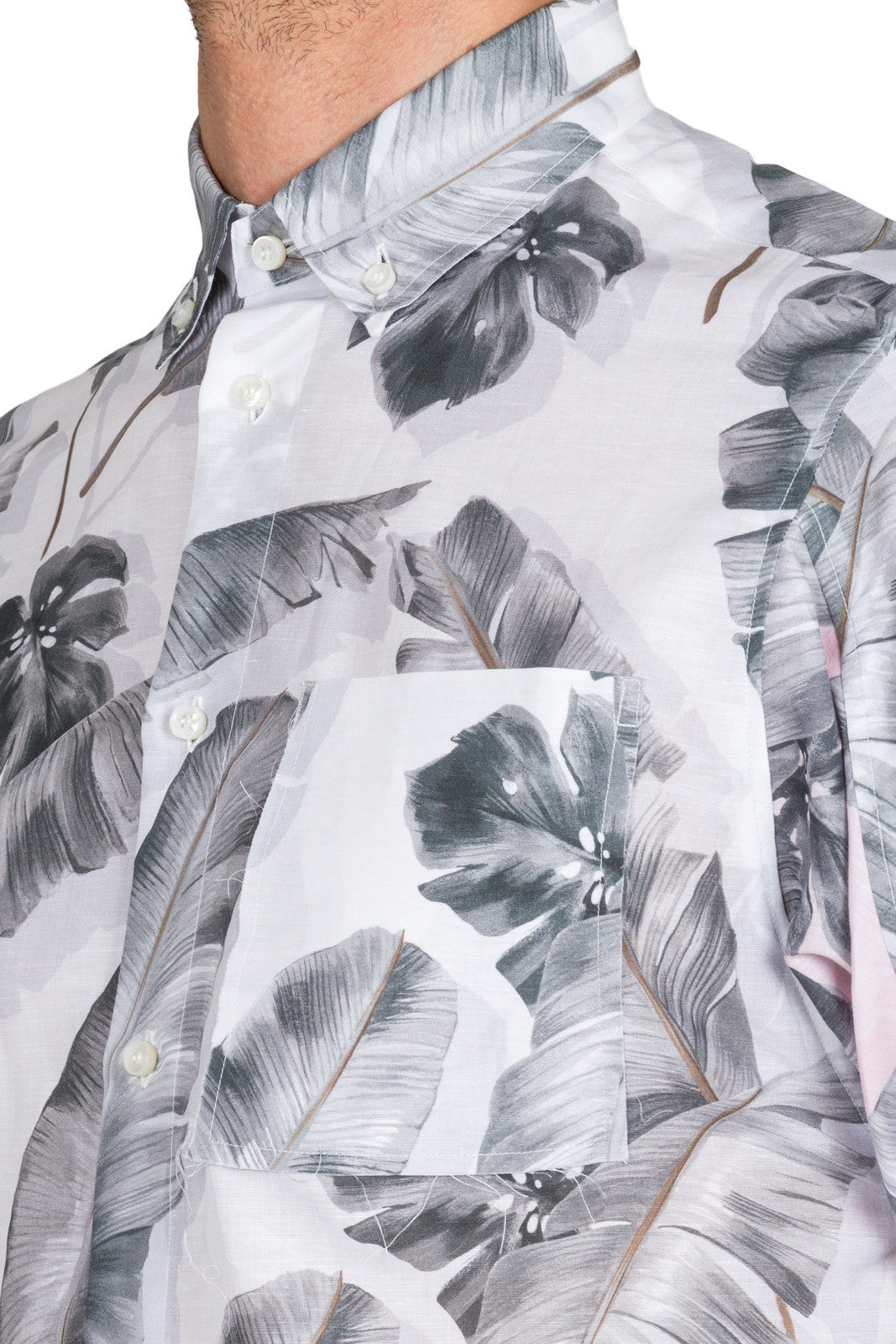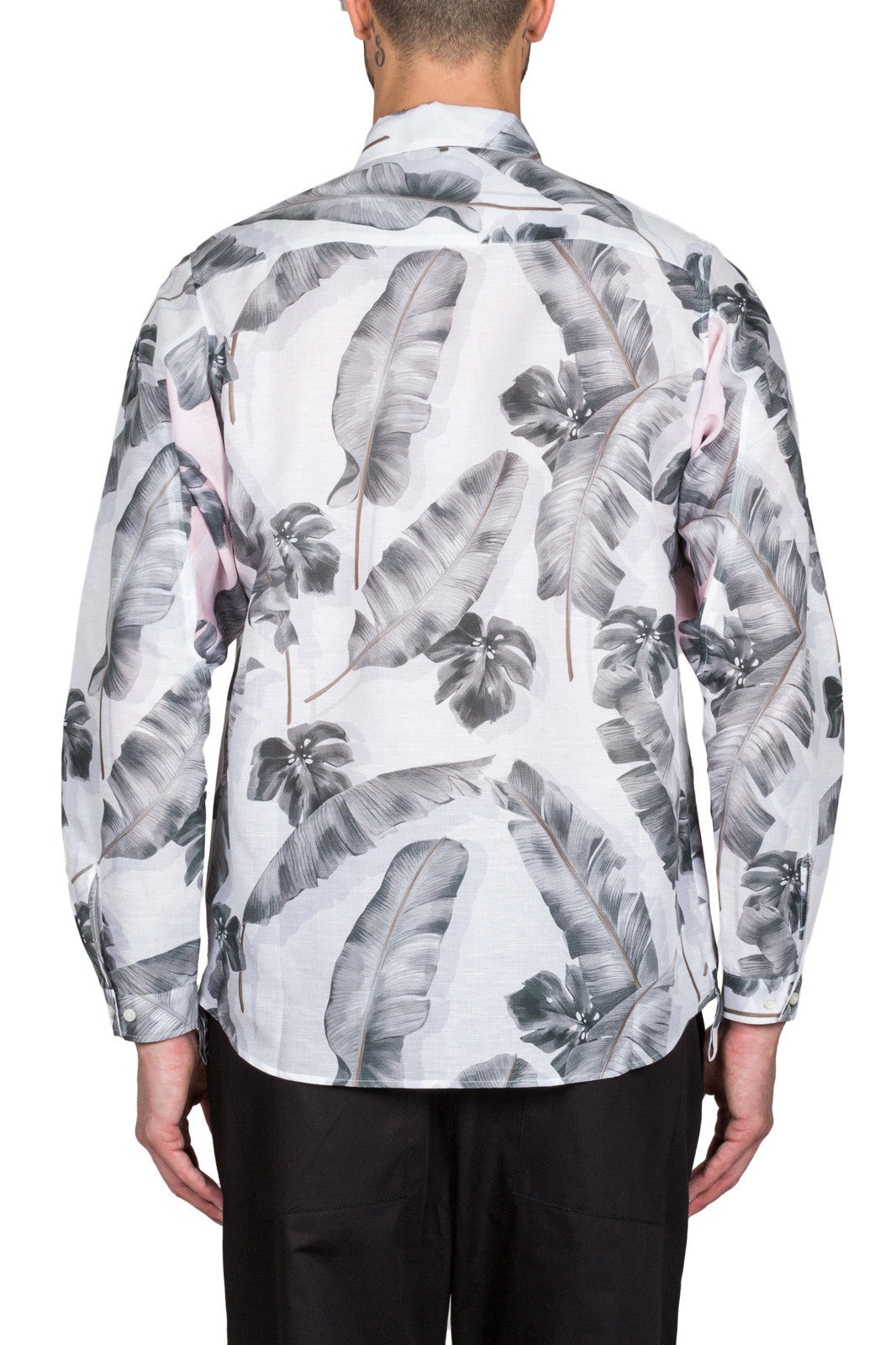 White linen-cotton blend Tropic print button-down shirt from OAMC.